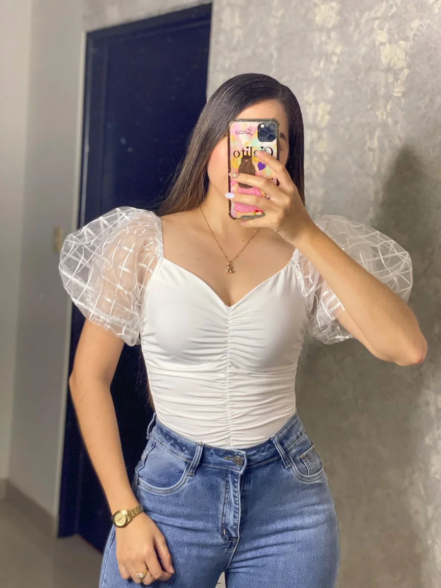 BLUSA TEJIDA + MANGAS TEJIDAS DE CUELLO