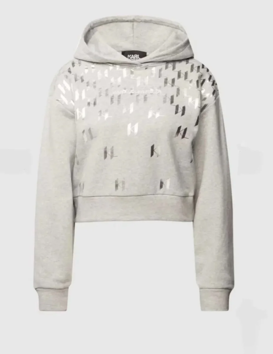 Sudadera con Capucha Karl Lagerfeld con Logos Estampados Gris Mujer