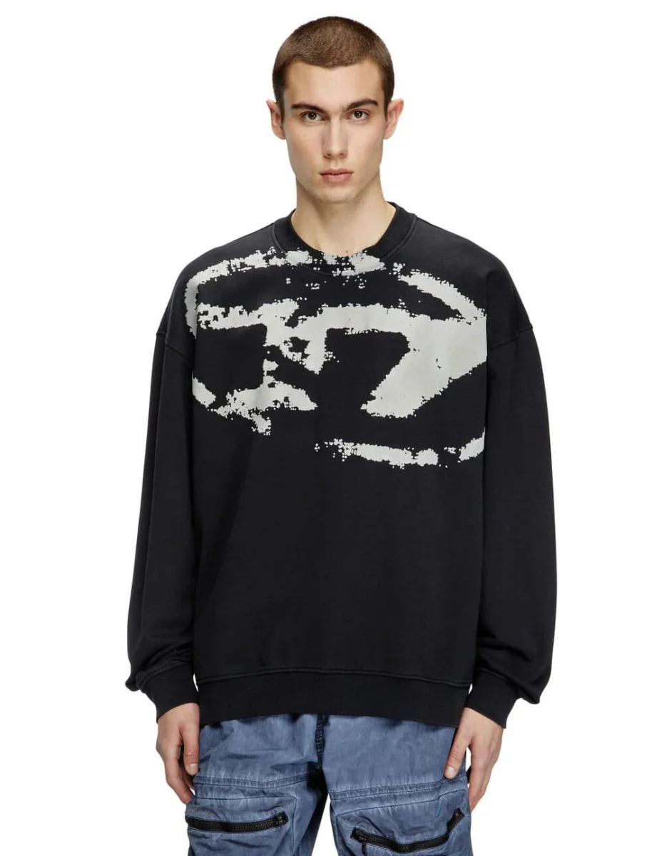 Sudadera DIESEL con Logo Desgastado en Relieve Negra Hombre