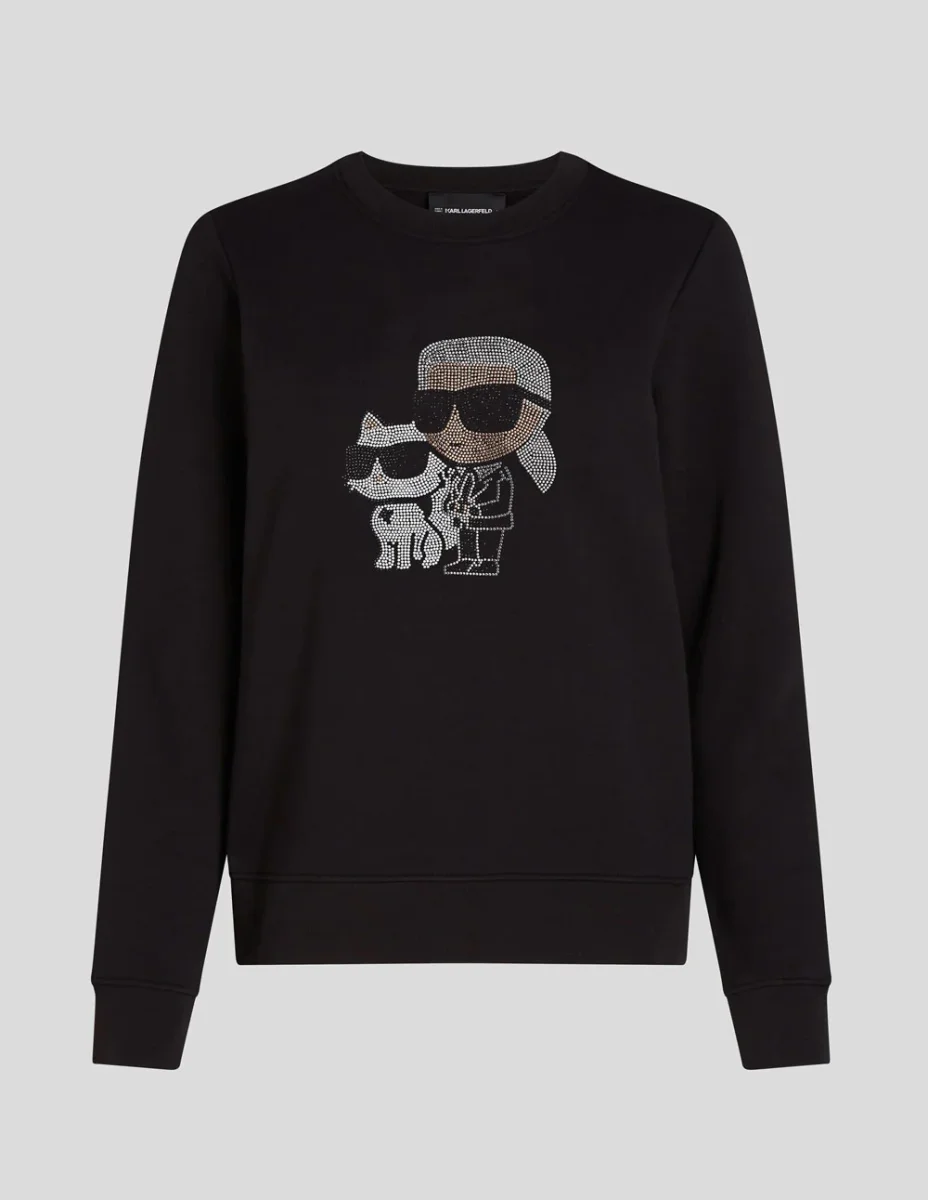 Sudadera Karl Lagerfeld con Pedreria de Karl y Choupette Ikon Negra Mujer