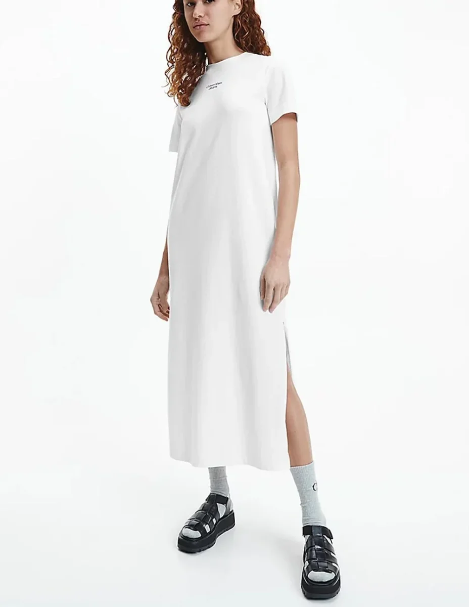 Vestido Maxi Calvin Klein Jeans con Abertura Lateral Blanco Mujer