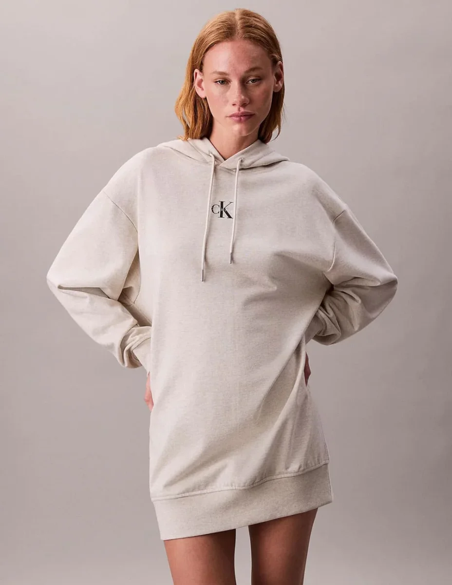 Vestido Calvin Klein Jeans Tipo Sudadera Beige Mujer