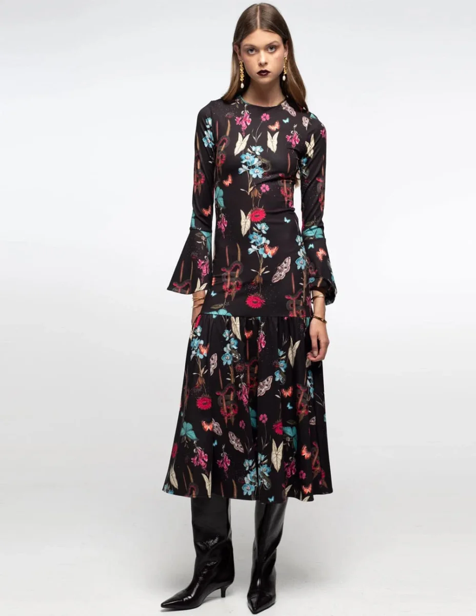 Vestido RELIGION Botanic Negro y Gris Mujer