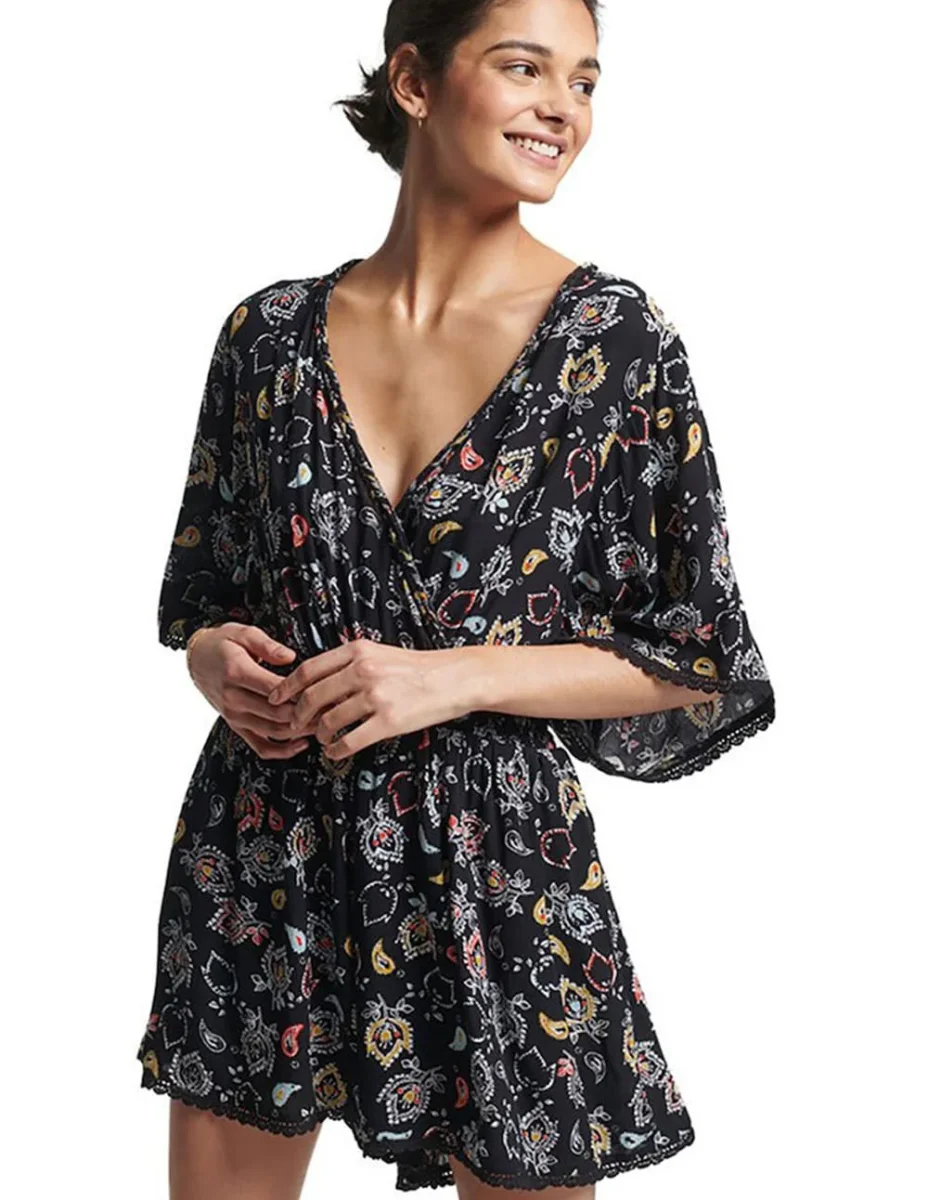 Mono Playero Superdry Vintage Estampado Negro Mujer