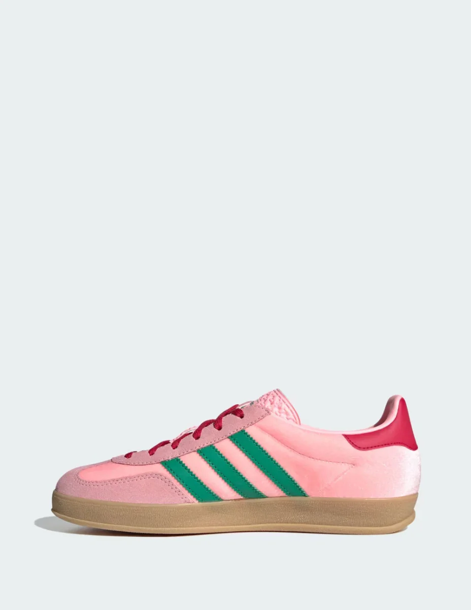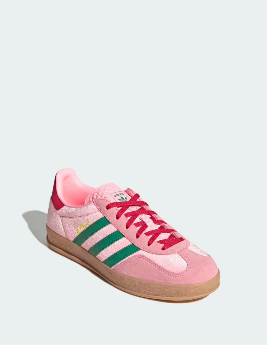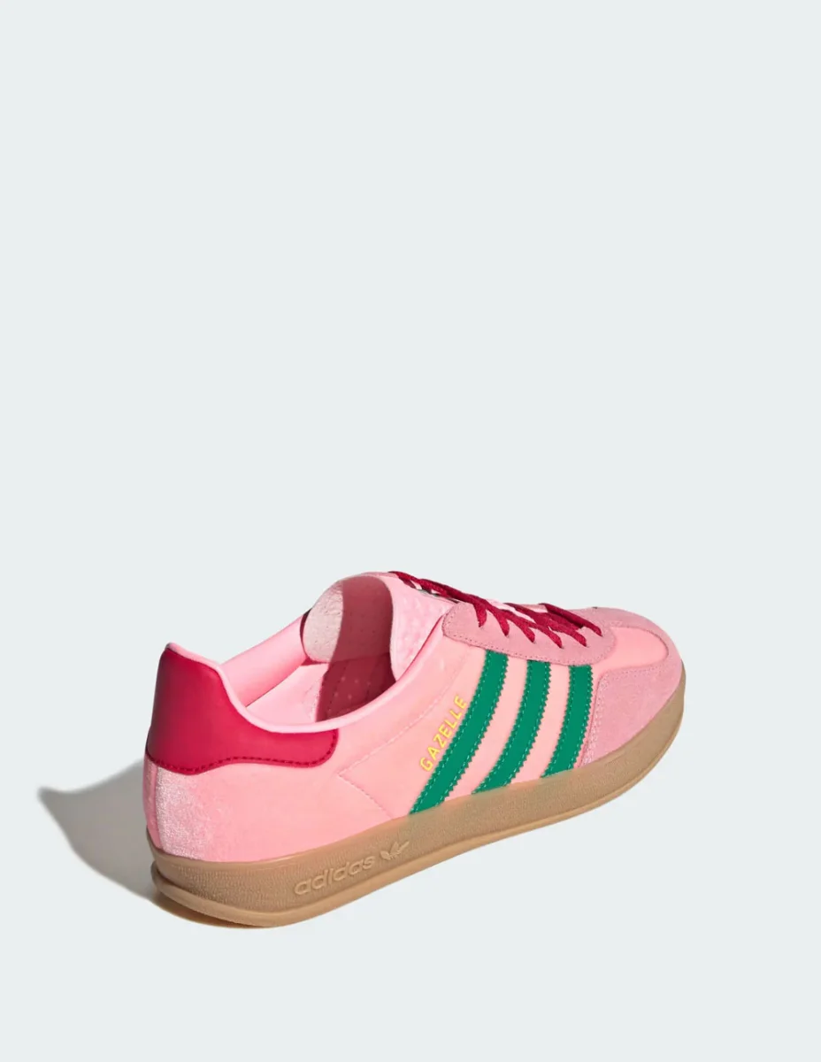 Las adidas Gazelle Indoor en color rosa y verde fusionan colores vibrantes con un diseño clásico, creando un calzado único y llamativo. Fabricadas con materiales de primera calidad, ofrecen comodidad y durabilidad. Ideales para quienes buscan destacar, estas zapatillas son el complemento perfecto para un estilo casual con personalidad.