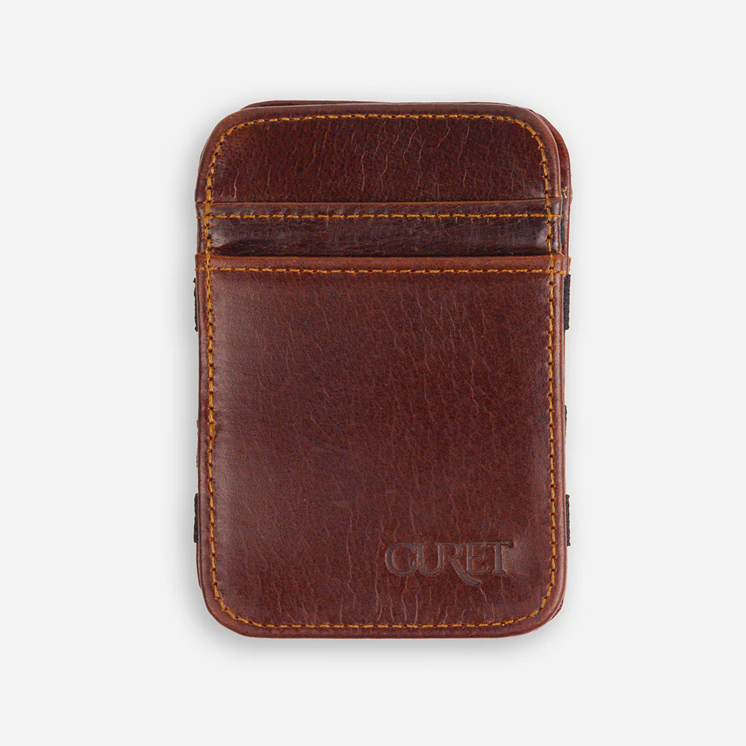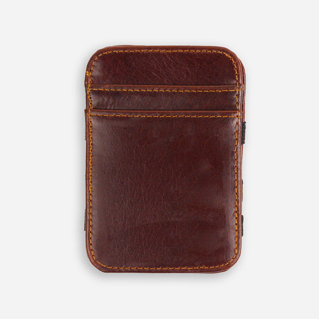 La Billetera Mágica asegura el dinero al voltear, con compartimientos para tarjetas y tiras elásticas que mantienen todo en su lugar.