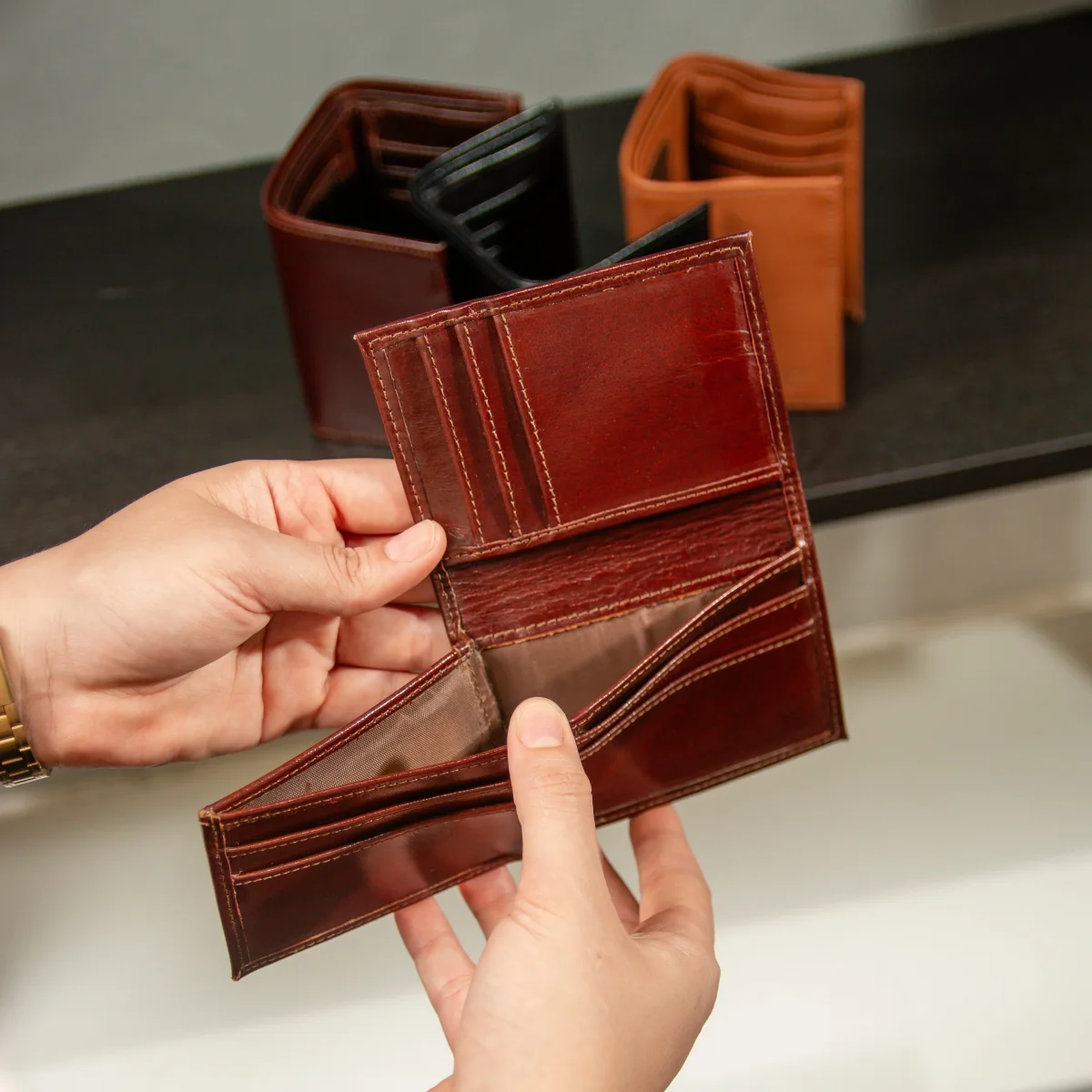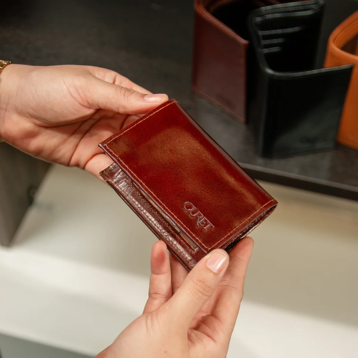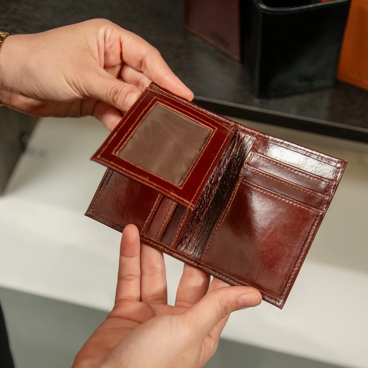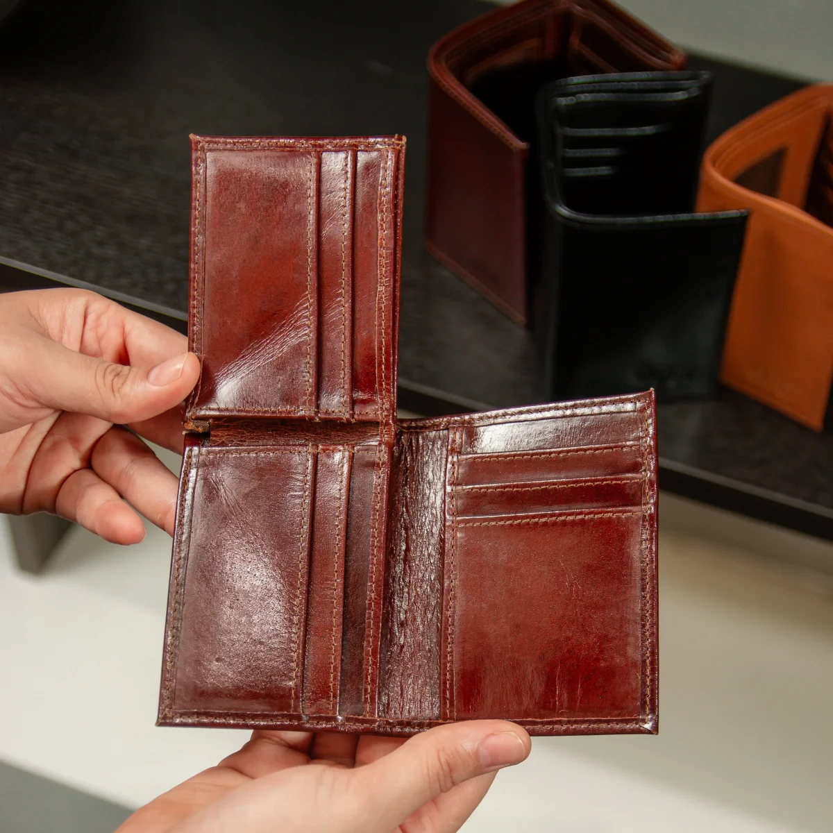 La Billetera TriFold Flip-Up combina un diseño elegante con compartimientos ocultos, permitiendo un acceso rápido y seguro a tus tarjetas y documentos esenciales.