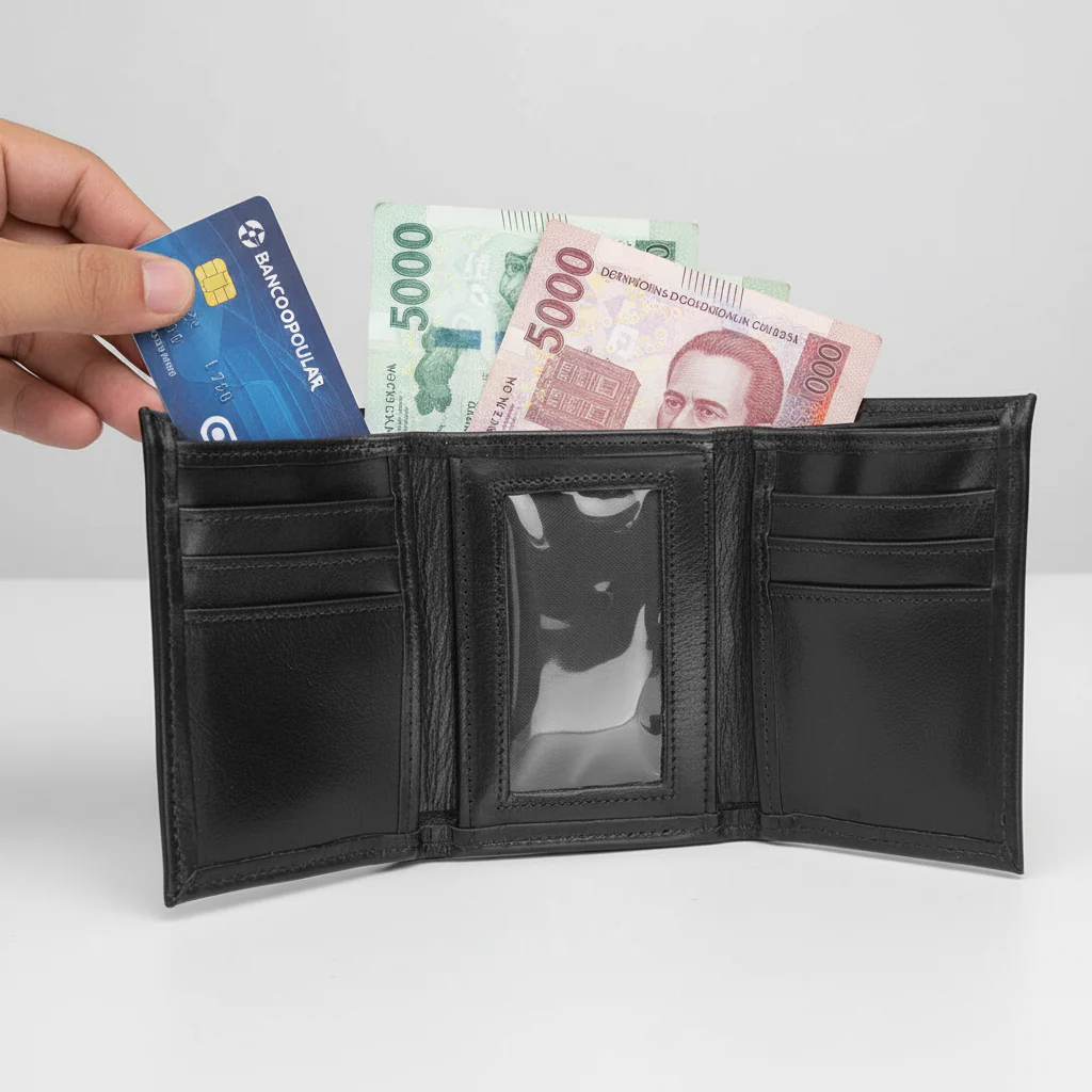 La Billetera TriFold + Ventana combina capacidad y practicidad con una ventana transparente para identificación y fácil acceso a tus tarjetas y efectivo.