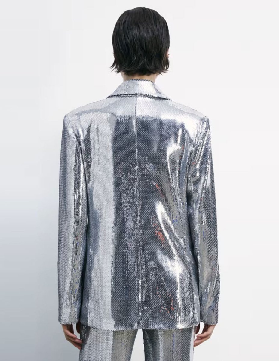 La Blazer Patrizia Pepe de Lentejuelas Gris aporta un estilo sofisticado y llamativo con un acabado brillante que realza cualquier conjunto. Su diseño estructurado favorece la silueta y ofrece comodidad. Ideal para eventos especiales o looks nocturnos, combina elegancia, carácter y versatilidad con un toque moderno y cuidadosamente definido.