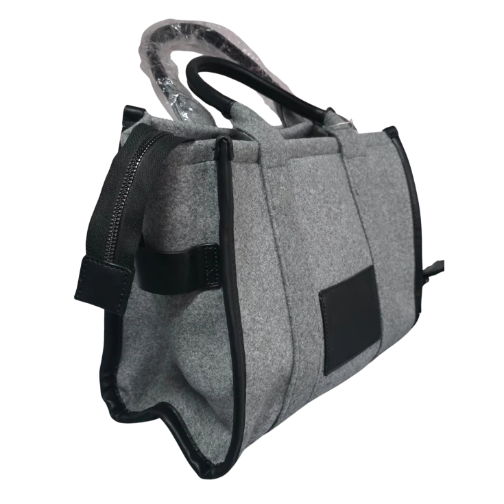 El tacto suave del fieltro aporta una sensación cálida y agradable, mientras que las asas firmes ofrecen un agarre cómodo y seguro. Su estructura mantiene la forma, transmitiendo solidez y confianza en cada uso.