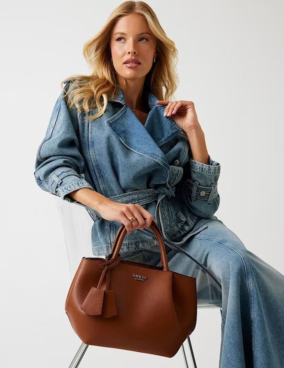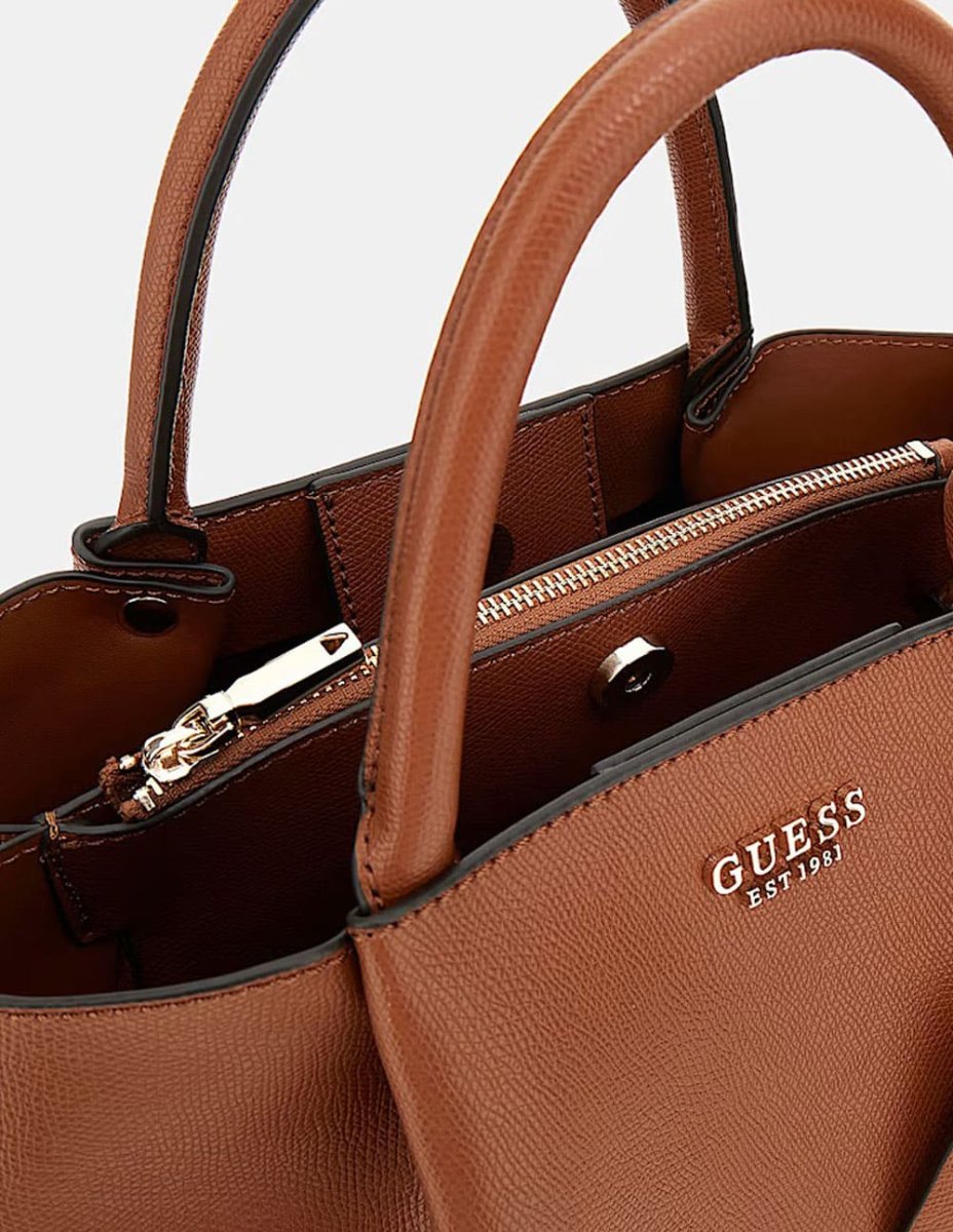 El Bolso de Mano GUESS Amorette Marrón destaca por su estilo elegante y funcional, ideal para elevar cualquier conjunto. Su acabado cuidado y su interior espacioso permiten organizar tus esenciales con comodidad. Un accesorio versátil que combina diseño moderno y practicidad para acompañarte en tu rutina diaria con un toque sofisticado.