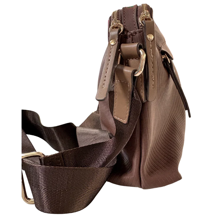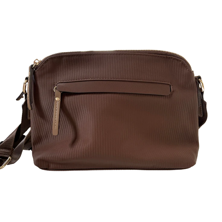 El bolso Imperial en color marrón chocolate es un accesorio elegante y sofisticado que destaca por su textura acanalada y su diseño funcional. Ideal para el día a día o para completar looks más cuidados, combina practicidad y estilo con un acabado cálido y atemporal que nunca falla.