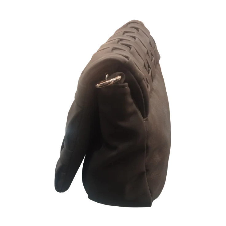 Este bolso combina un acabado tipo piel de tacto suave con un diseño entrelazado que aporta volumen y carácter. Su tono taupe, sofisticado y versátil, lo convierte en una pieza ideal para lucir tanto en el día a día como en ocasiones especiales.