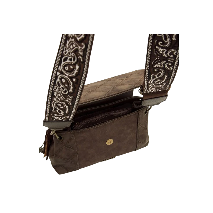 El Bolso Mustang Just Moka es el equilibrio perfecto entre diseño artesanal y estilo contemporáneo. Confeccionado en un tono moka cálido y elegante, su acabado suave y su forma estructurada lo convierten en un accesorio ideal tanto para el día a día como para ocasiones especiales. Su correa bordada con diseño étnico añade un toque boho-chic que realza cualquier look.