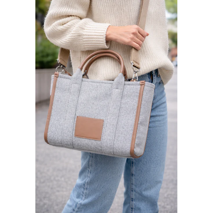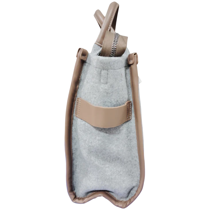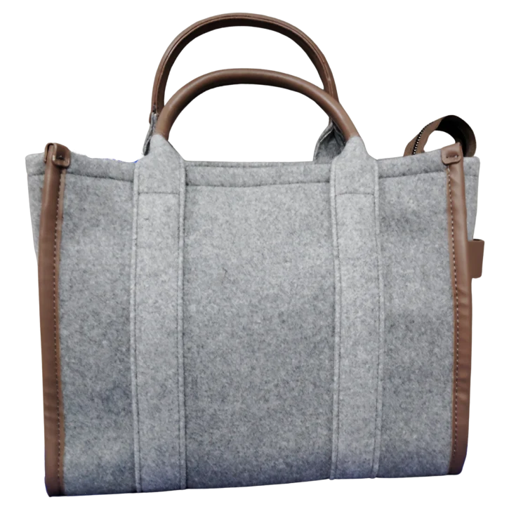 El fieltro ofrece un tacto suave y cálido que transmite sensación de confort y ligereza. Las asas aportan firmeza y un agarre cómodo, mientras que la estructura del bolso mantiene la forma, proyectando orden y estilo en cada uso.