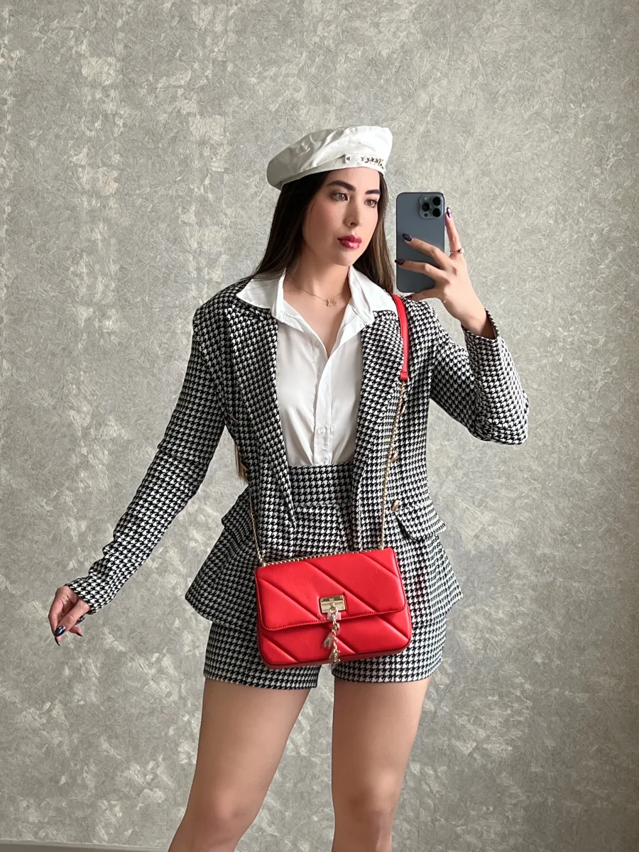 Negro, piel de becerro, capitonado estilo chevron, placa del logo en tono dorado, dije del logo, detalle de candado, correa de cadena para el hombro, parte superior plegable con cierre magnético, compartimento principal, forro con estampado del logo y bolsillo interno con cierre.