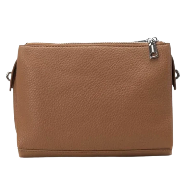 Al tocarlo sentirás la textura refinada del material efecto piel, mientras el tono taupe aporta una sensación de calma sofisticada. Al colocarlo al hombro o cruzado, la correa se adapta con comodidad, permitiéndote llevarlo con soltura y estilo.