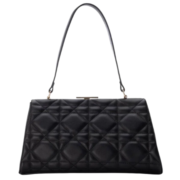 El Bolso XTI Frosty en color negro combina el estilo clásico con un aire moderno irresistible. Su diseño tipo trapezoide con acabado acolchado en rombos y cierre de boquilla le da un toque vintage y sofisticado que eleva cualquier look al instante.