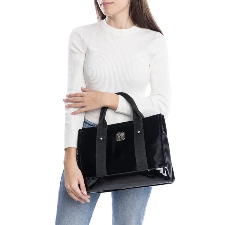Bolso XTI 184334, un diseño tipo tote con líneas rectas y acabado brillante en la base que añade un toque moderno y urbano. Su estructura semirrígida permite mantener la forma sin perder capacidad.