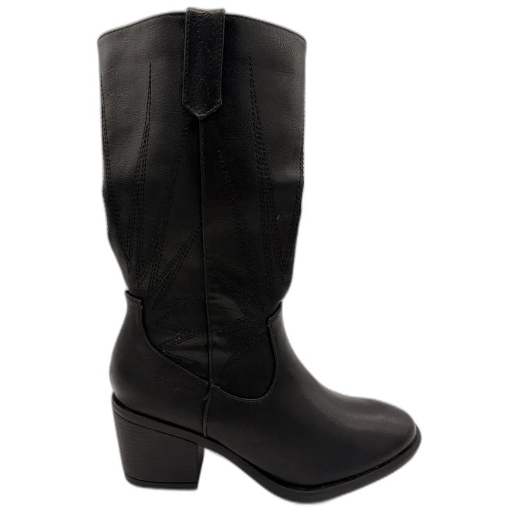 La Bota Tacón Wini Negro combina el estilo cowboy con un toque moderno y elegante. Su caña media, diseño con bordados western y acabado en material suave aportan carácter y versatilidad a cualquier look urbano o casual.