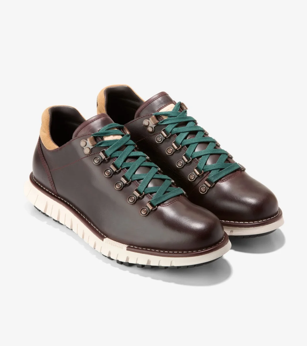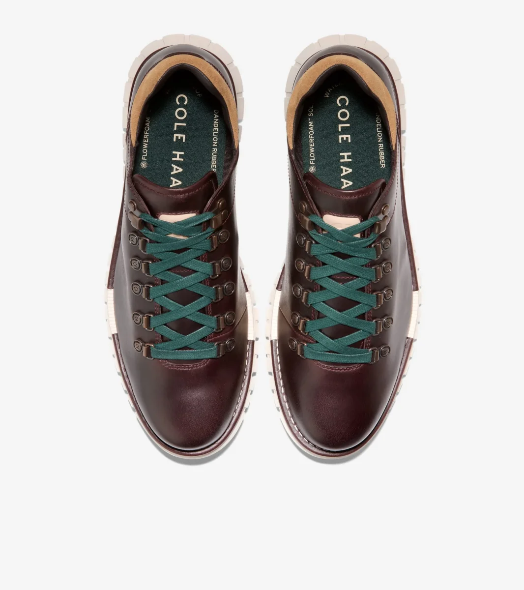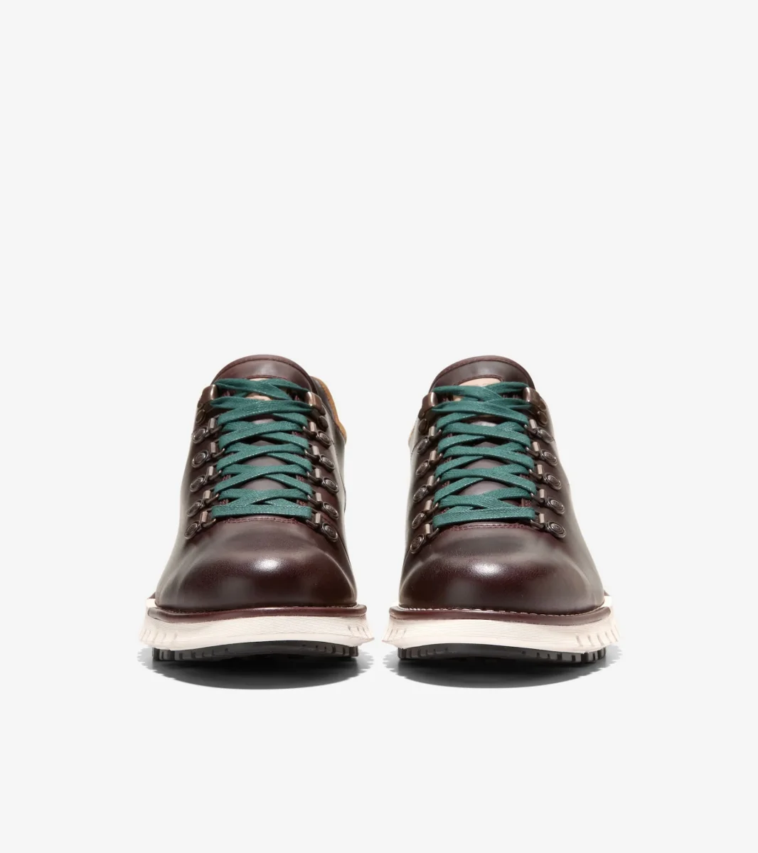 - Parte superior de cuero impermeable con detalles; Sistema de cordones con gancho metálico y anilla en D