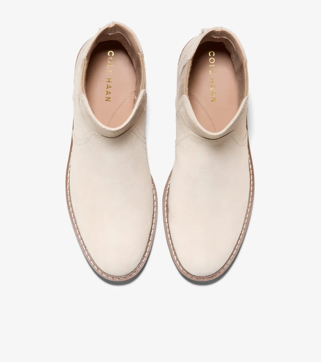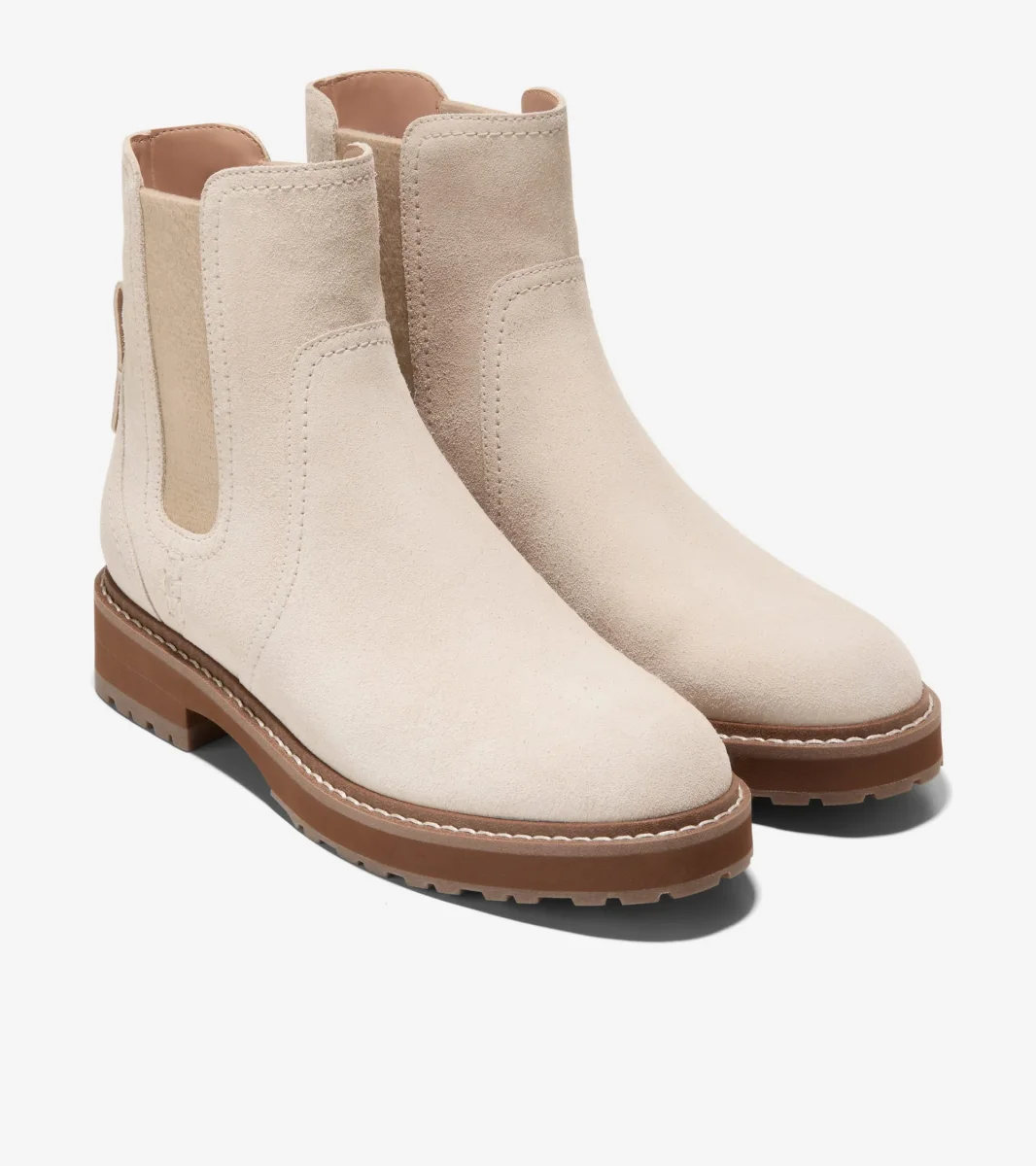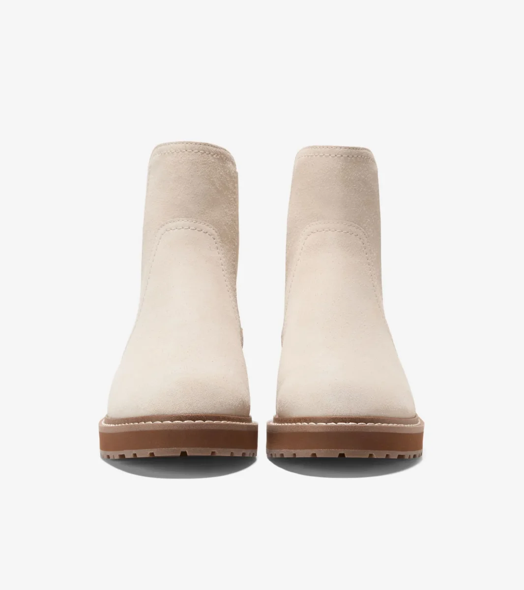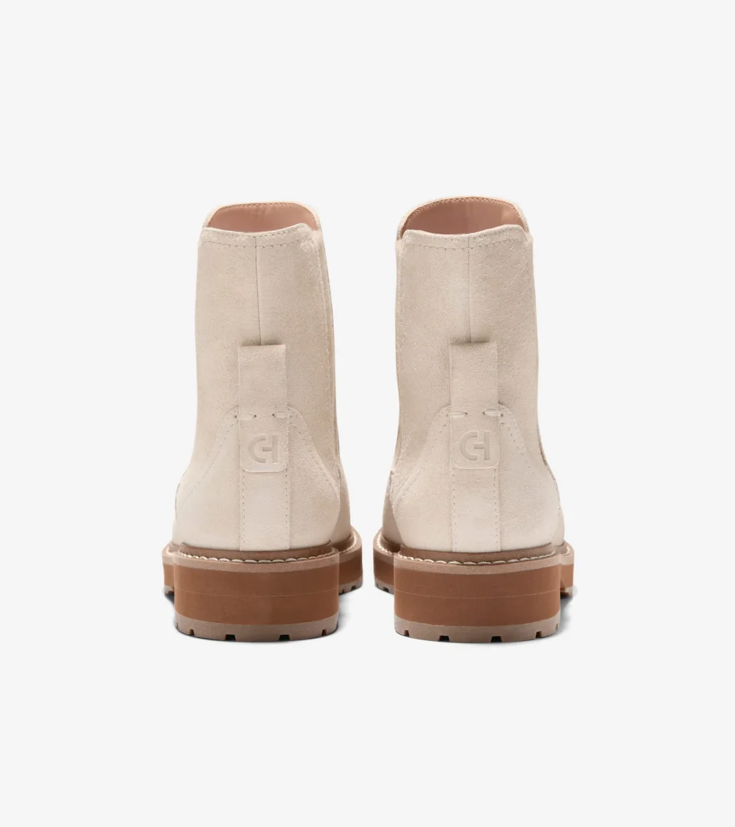 - Parte superior de gamuza impermeable en Oat; cordones elásticos