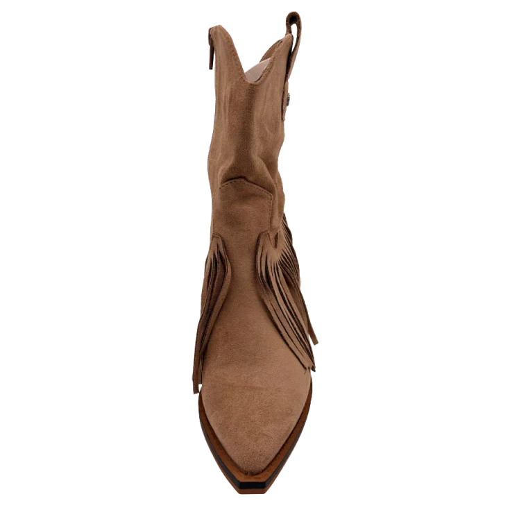 El Botín Cowboy Texas Apricot combina la esencia del estilo western con un acabado moderno y femenino. Su textura suave y su color apricot aportan un toque cálido y versátil que transforma cualquier look en un outfit con personalidad.