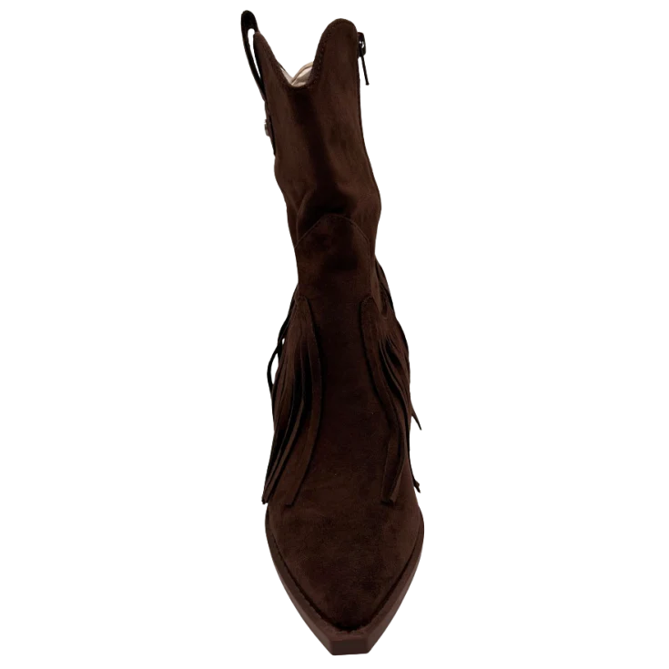 El Botín Cowboy Texas Chocolate es la elección perfecta para quienes buscan un estilo western auténtico con un toque sofisticado. Su acabado en serraje color chocolate aporta profundidad, calidez y una elegancia terrenal que combina con todo.