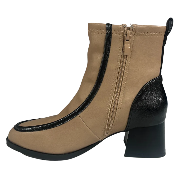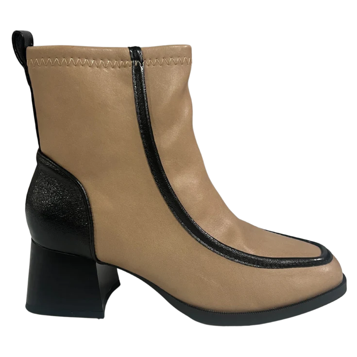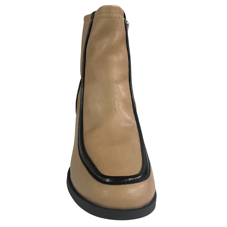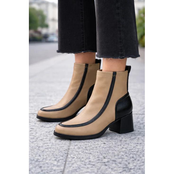 El Botín Martina Tacón Beige es la combinación perfecta de estilo contemporáneo y elegancia urbana. Su diseño bicolor en beige y negro, junto con un tacón ancho cómodo y un corte moderno, lo convierten en un imprescindible para destacar tus looks de temporada.