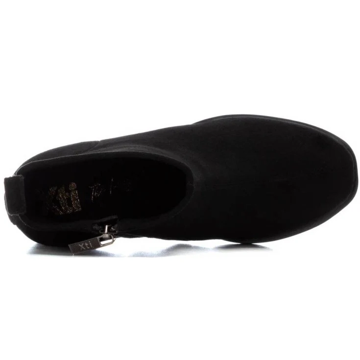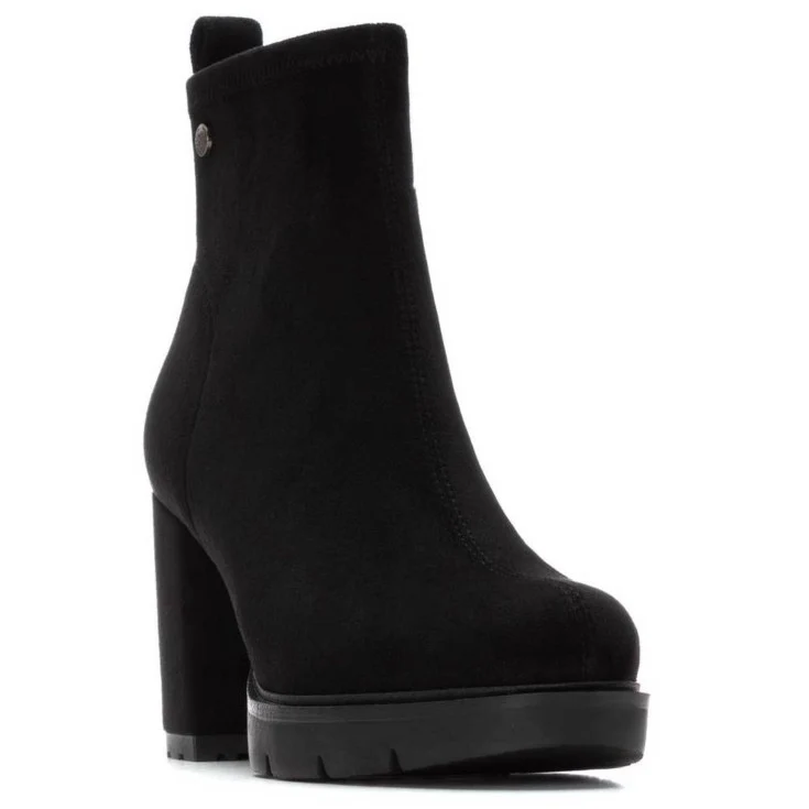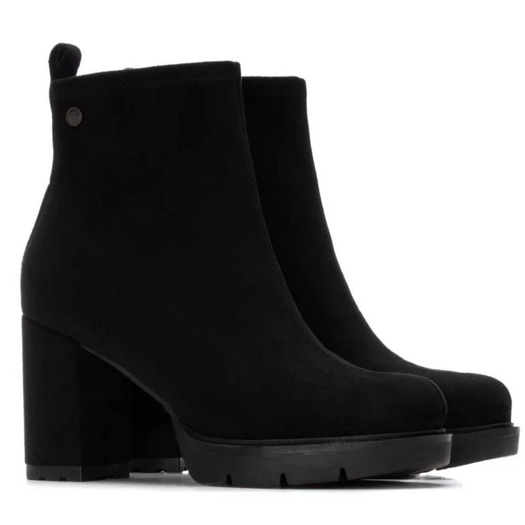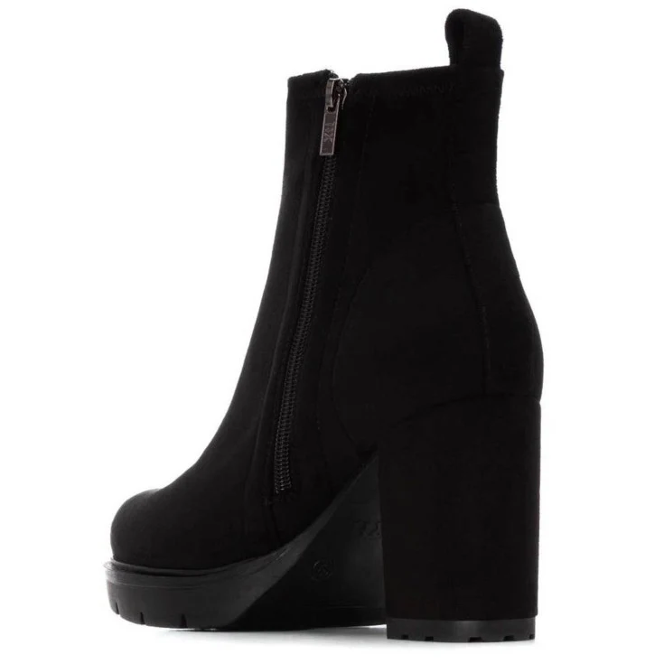 El Botín Marzella XTI en antelina negra es un modelo elegante y versátil que no puede faltar en tu armario. Su diseño minimalista con caña ajustada y tacón ancho alto lo convierte en el aliado perfecto para estilizar la figura sin renunciar a la comodidad.
