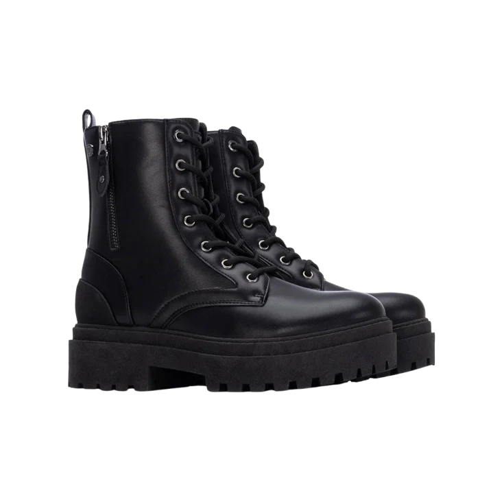● Diseño militar con cordones frontales y cremallera lateral para calce rápido.