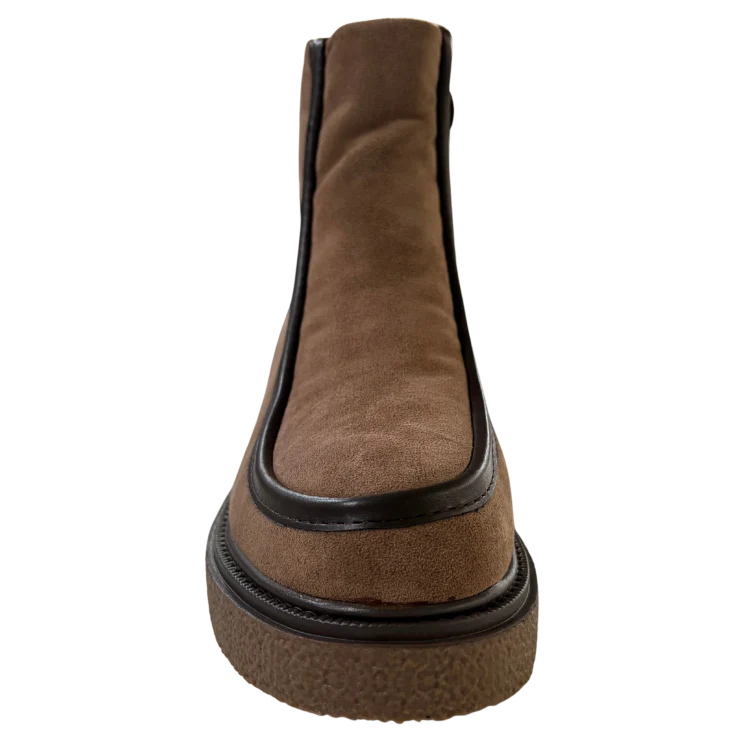 El tacto aterciopelado del material transmite calidez y suavidad desde el primer contacto. Al caminar, la plataforma amortigua cada pisada, generando una sensación de estabilidad y comodidad que se mantiene durante todo el día.