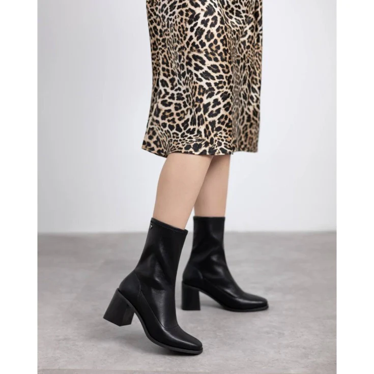 Sofisticación y comodidad se unen en el Botín Tacón Medio Edim Negro, un modelo atemporal que eleva cualquier look con su diseño minimalista y elegante. Su textura suave y su estructura flexible lo convierten en un imprescindible del armario femenino, perfecto para acompañarte del día a la noche.