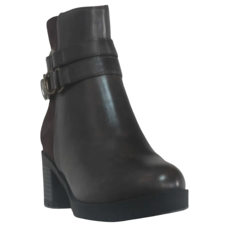 El Botín Tacón Medio Texas Marrón es la elección perfecta para quienes buscan elegancia, comodidad y un toque sofisticado en su día a día. Su diseño combina tonos marrones con detalles en hebilla dorada, aportando un aire moderno y atemporal que se adapta a cualquier ocasión.