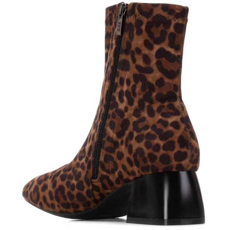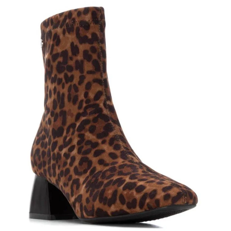 El Botín Tacón XTI Amsterdam en ante estampado leopardo es un modelo atrevido y con personalidad, perfecto para quienes buscan marcar tendencia. Su diseño en textura suave con estampado animal print se combina con un tacón medio de acabado metalizado, logrando un estilo moderno y sofisticado.
