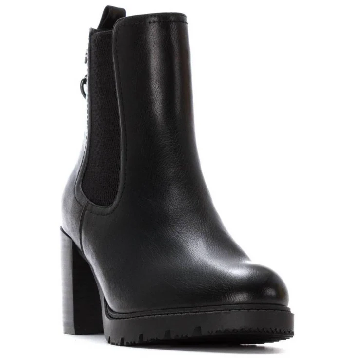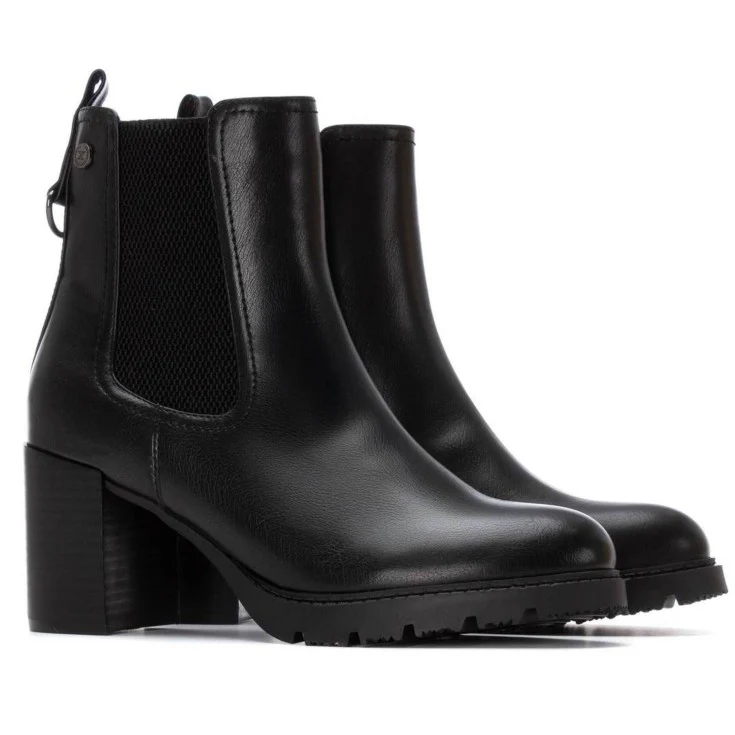 El Botín XTI Budapest Tacón Alto en color negro es un modelo elegante y funcional, diseñado para mujeres que buscan un calzado cómodo y versátil con un toque sofisticado. Su diseño tipo chelsea con elásticos laterales lo hace práctico y moderno, mientras que el tacón alto ancho aporta altura y estabilidad.