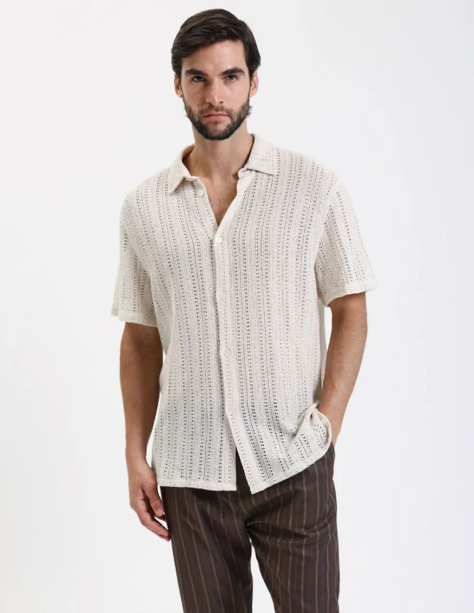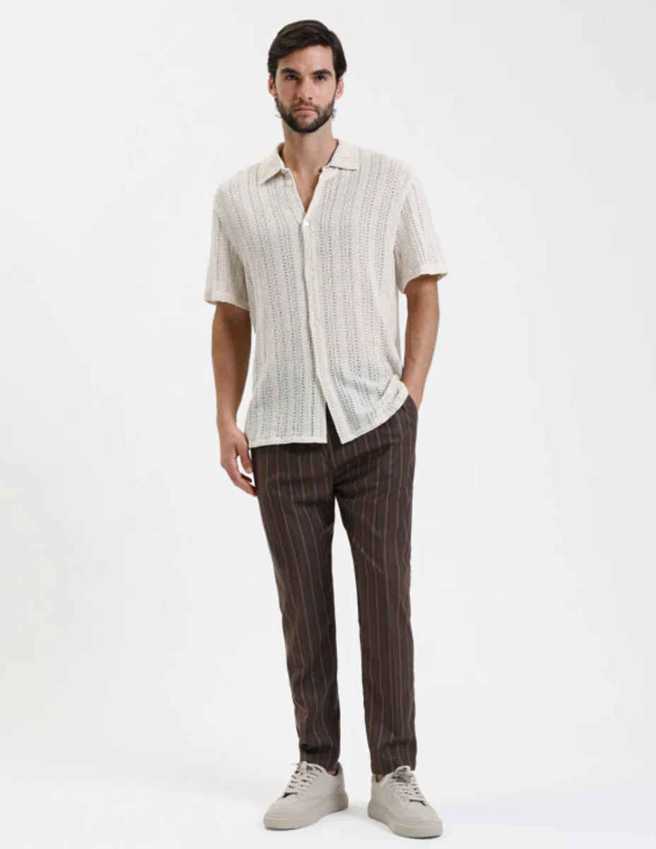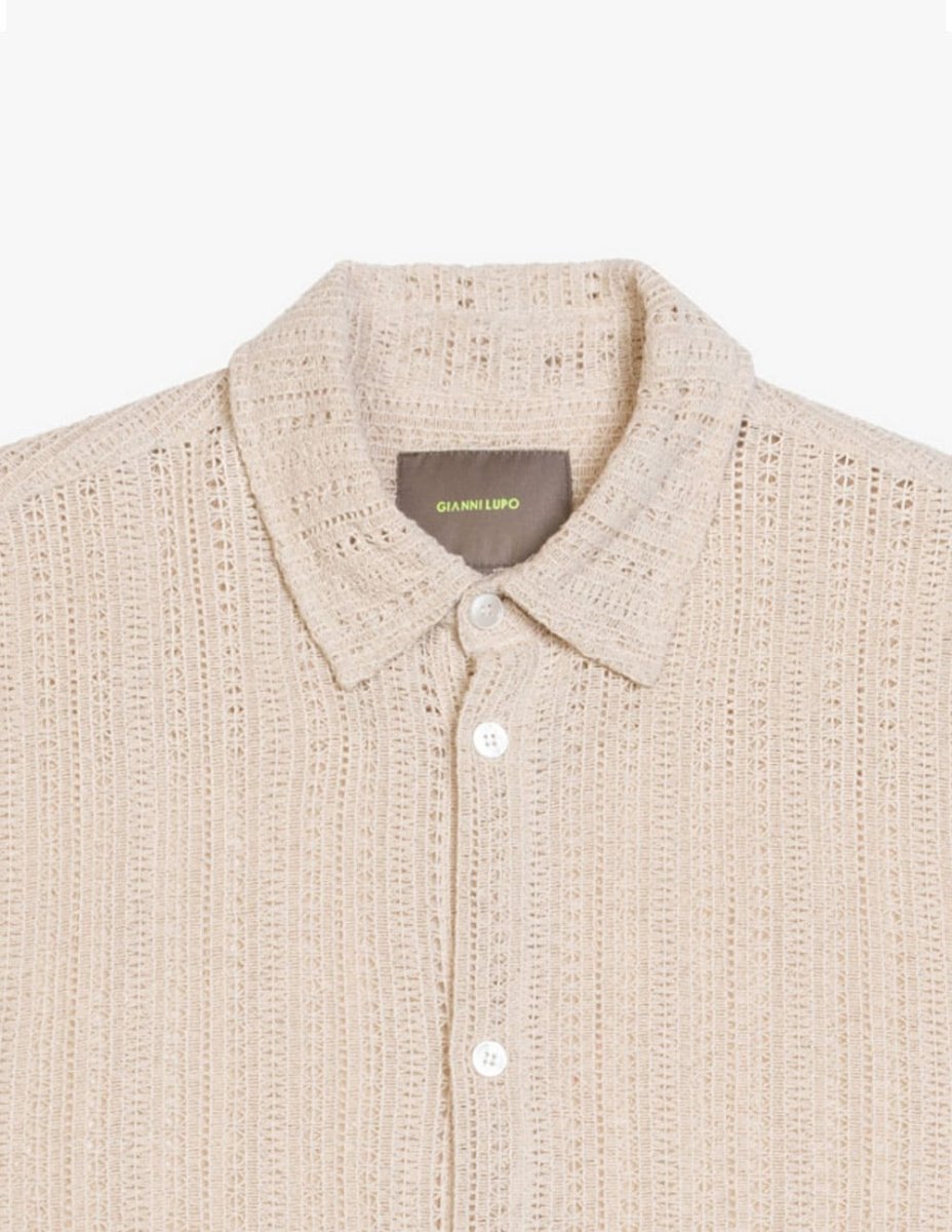 La Camisa Gianni Lupo de Punto Abierto Beige combina elegancia informal y frescura. Con tejido ligero y textura acanalada, es ideal para looks relajados pero con estilo. Su corte moderno y detalles cuidados la hacen perfecta para el verano, aportando comodidad sin renunciar al diseño contemporáneo y sofisticado.