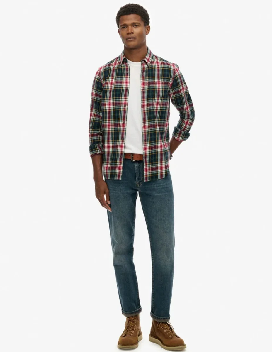 La Camisa Superdry de Franela de Cuadros Verde y Roja ofrece un estilo clásico con un toque moderno. Su tejido suave y cálido garantiza comodidad durante todo el día. Ideal para looks casuales, combina perfectamente con jeans o pantalones, aportando un aire relajado y contemporáneo.