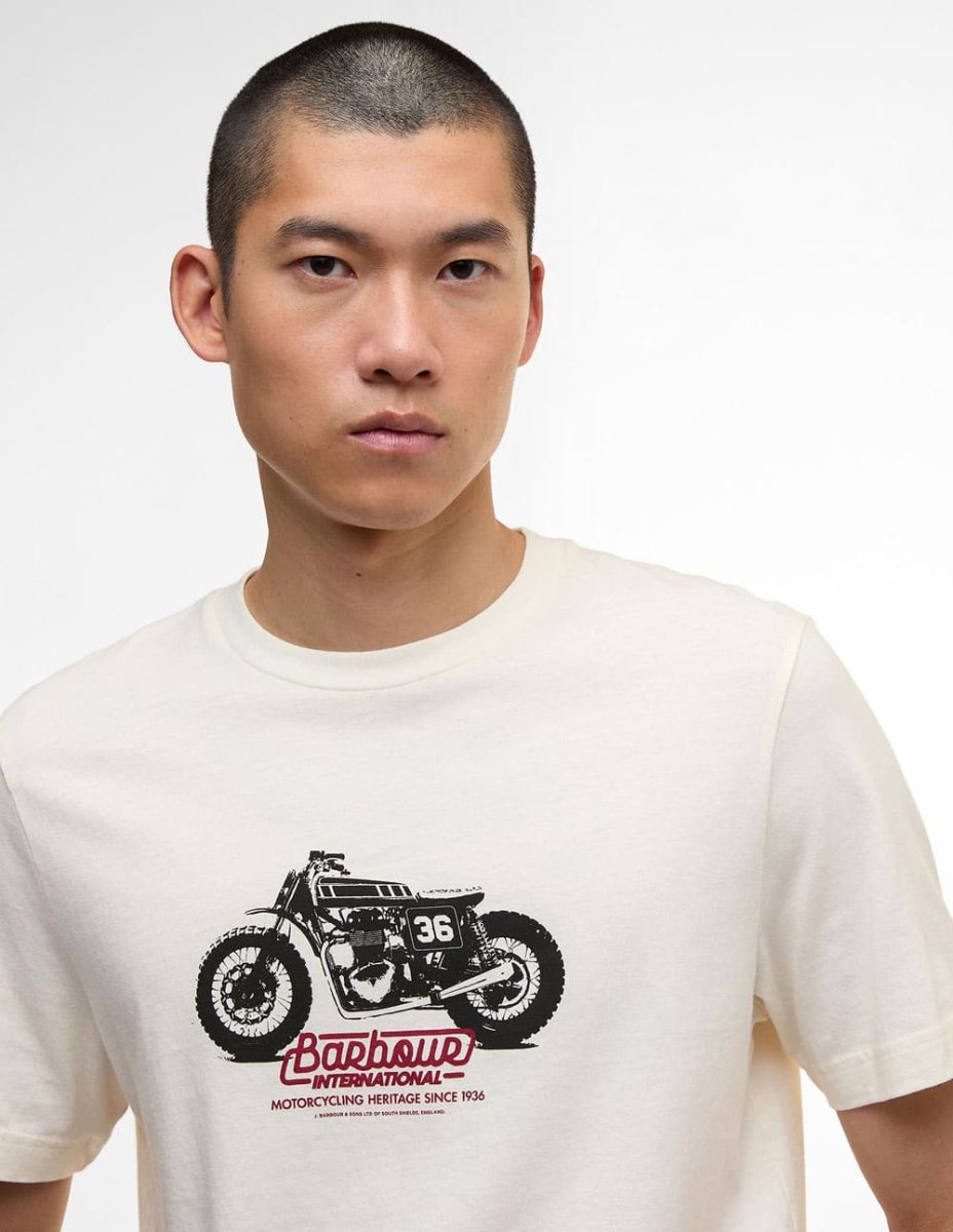 La Camiseta Barbour Cruise Graphic Blanca combina estilo casual y comodidad. Confeccionada en algodón suave, ofrece un ajuste relajado perfecto para el día a día. Su diseño con gráfico distintivo aporta un toque moderno y auténtico, convirtiéndola en una prenda versátil ideal para completar looks urbanos con personalidad.