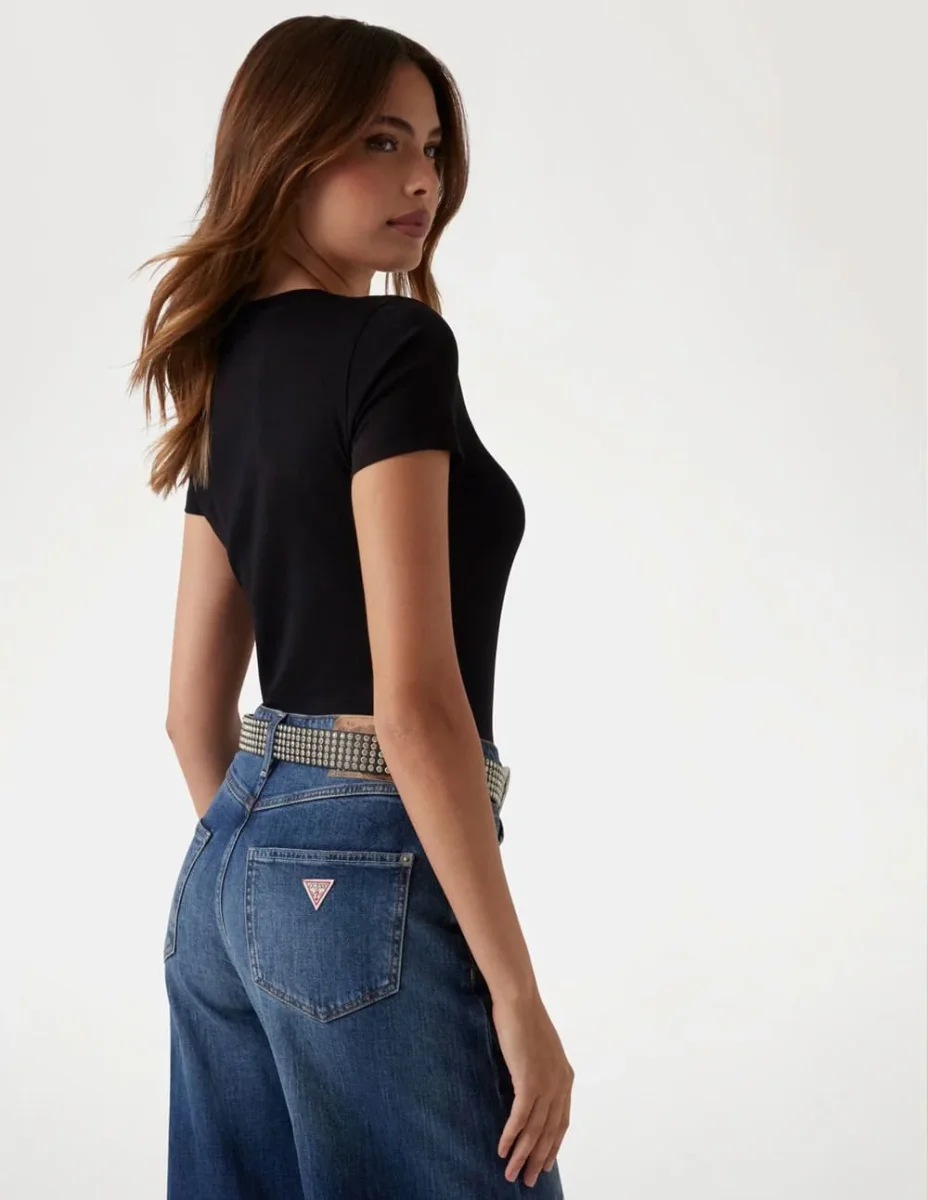 La Camiseta GUESS con Logo de Pedrería Negra es una prenda versátil que combina sofisticación y estilo urbano. Su logo decorado con brillantes detalles aporta un acabado elegante y llamativo. Confeccionada en algodón suave, garantiza comodidad y modernidad, convirtiéndose en la elección ideal para realzar cualquier look tanto de día como de noche.