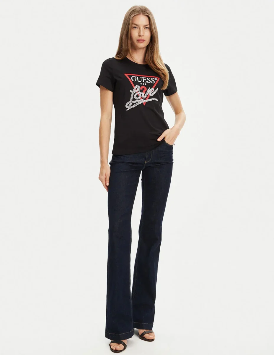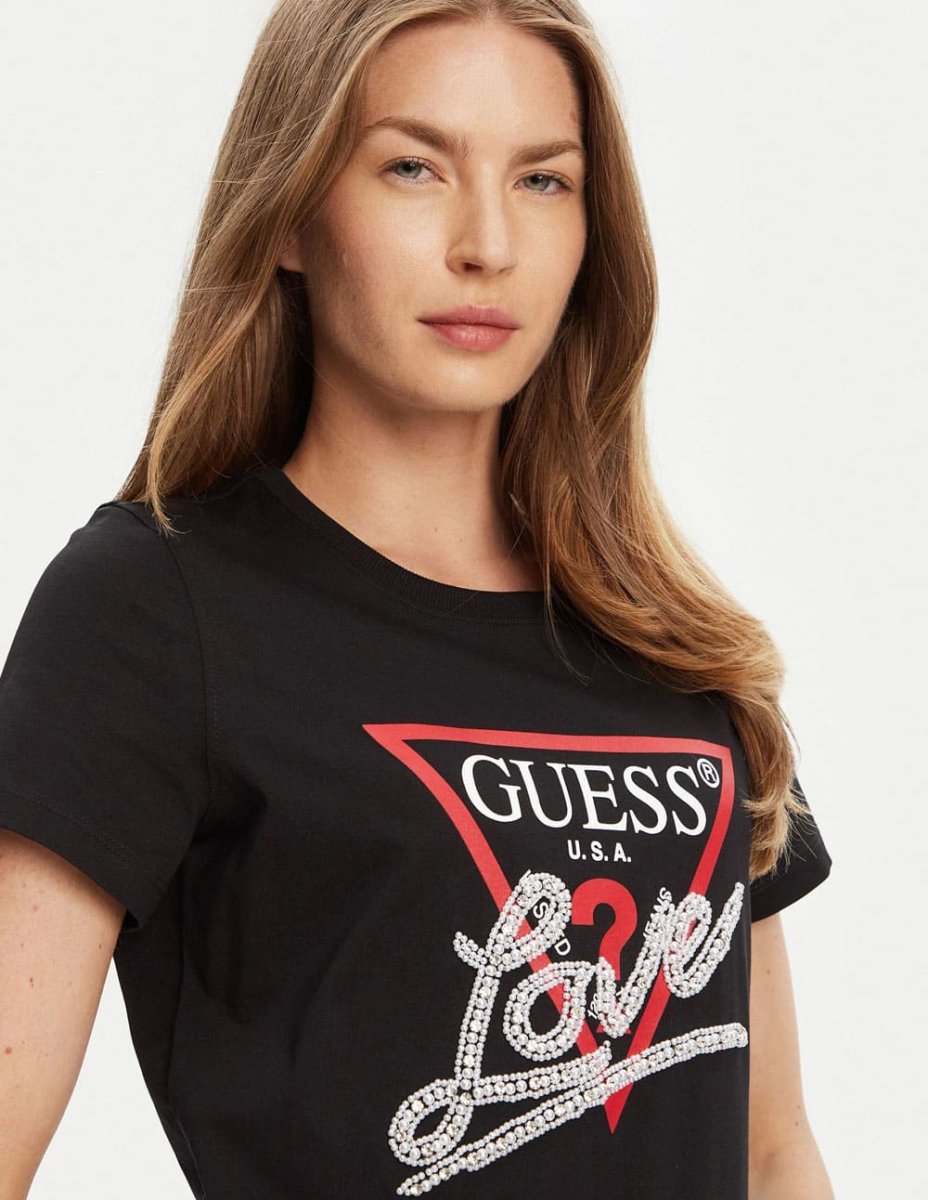 Camiseta GUESS con Logo de Perlas Negra Mujer