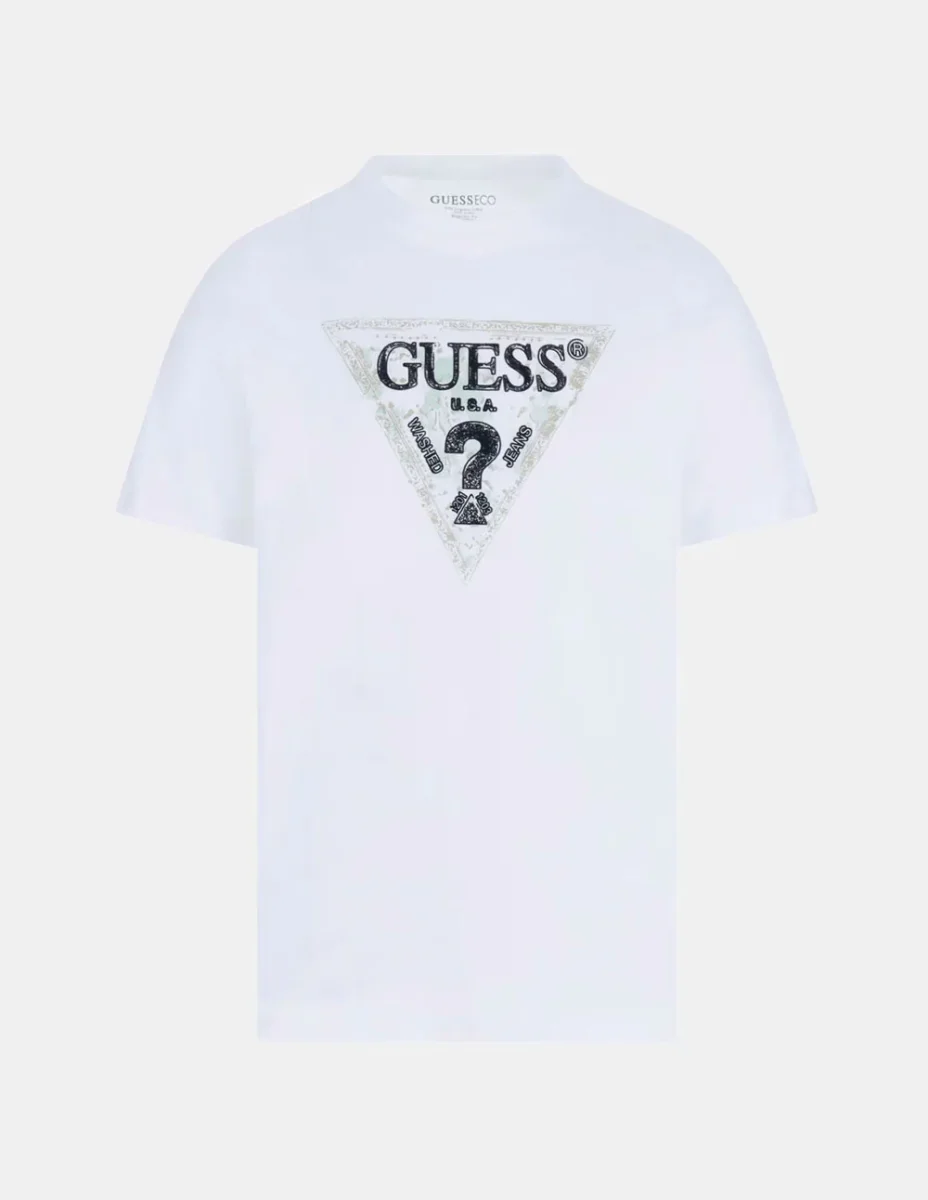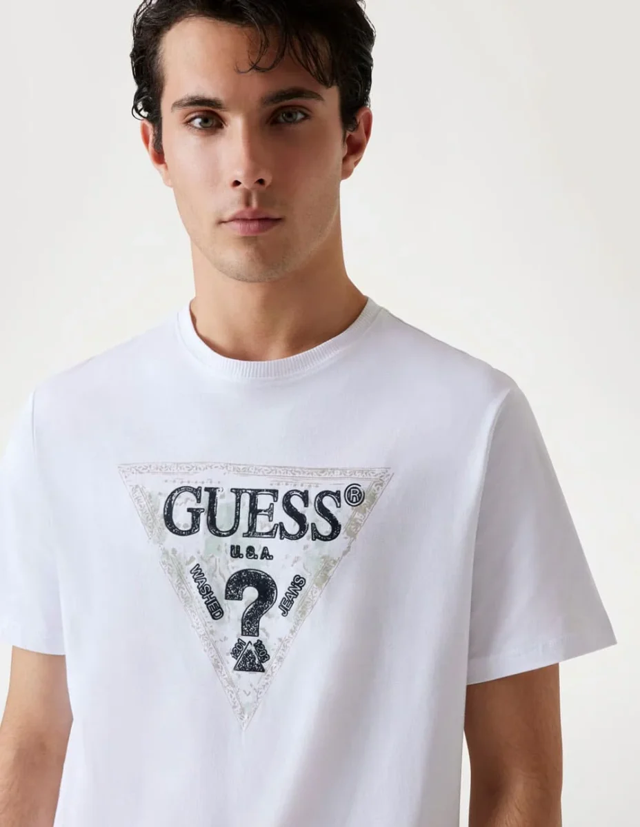 La Camiseta GUESS con Logo Triángulo Blanca refleja un estilo moderno y atemporal con el icónico emblema de la marca en el frente. Confeccionada en algodón suave, garantiza comodidad y frescura durante todo el día. Una prenda versátil que se adapta a looks casuales, aportando autenticidad y un toque distintivo.