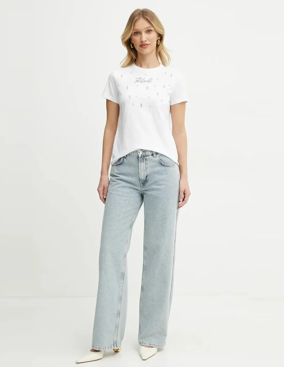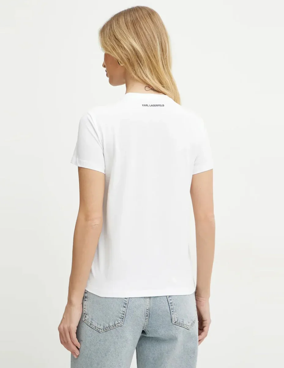 La Camiseta Karl Lagerfeld con Pedrería Karl Signature Blanca aporta un toque elegante y moderno con su diseño decorado en cristales. Su confección en algodón suave garantiza comodidad, mientras que el detalle brillante eleva cualquier look casual. Ideal para quienes buscan estilo y sofisticación en una prenda versátil.