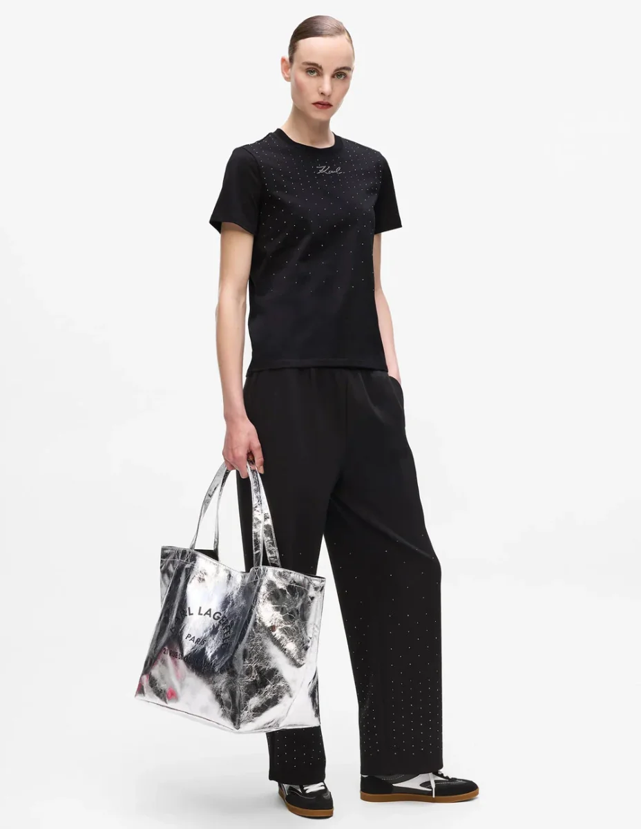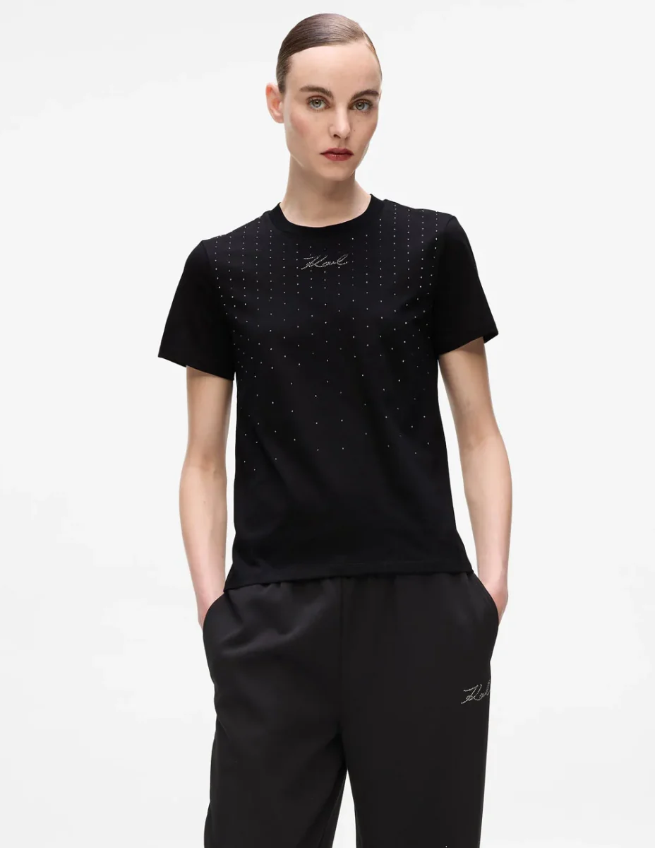 La Camiseta Karl Lagerfeld con Pedrería Negra combina estilo sofisticado y un toque distintivo gracias a sus detalles brillantes. Confeccionada en materiales de calidad, ofrece comodidad y suavidad en todo momento. Ideal para looks casuales o más elegantes, es una prenda versátil que refleja modernidad y la esencia de la marca.