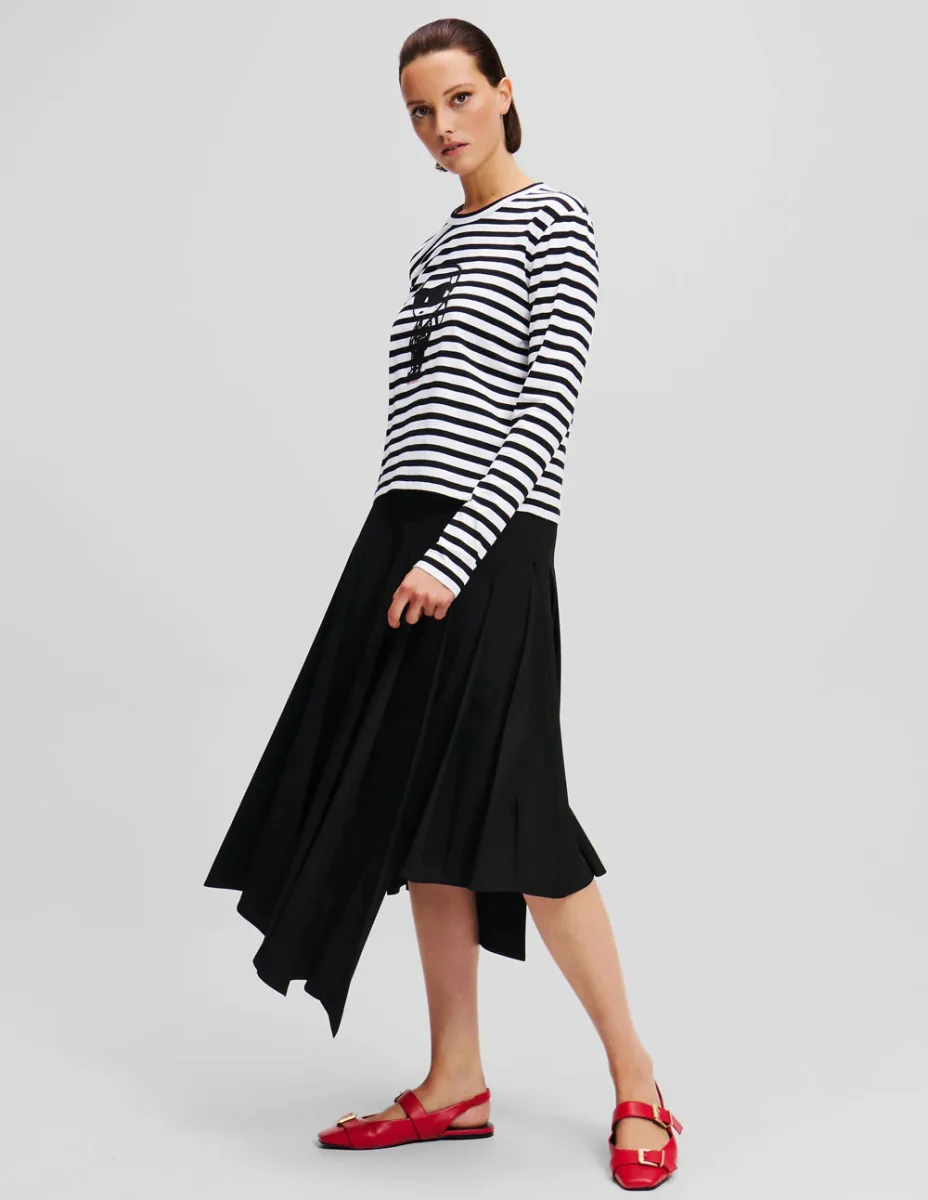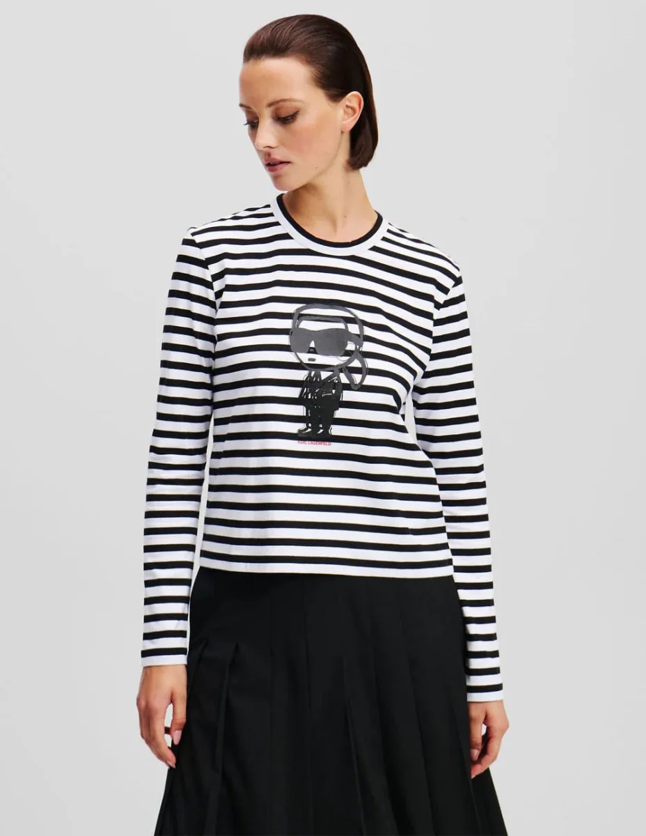 La camiseta de manga larga Ikon de Karl Lagerfeld en negro y blanco combina un diseño de rayas atemporal con el estilo icónico del diseñador. Confeccionada en algodón de alta calidad, ofrece comodidad y versatilidad. Perfecta para looks casuales o sofisticados, añade un toque moderno y elegante a tu guardarropa.