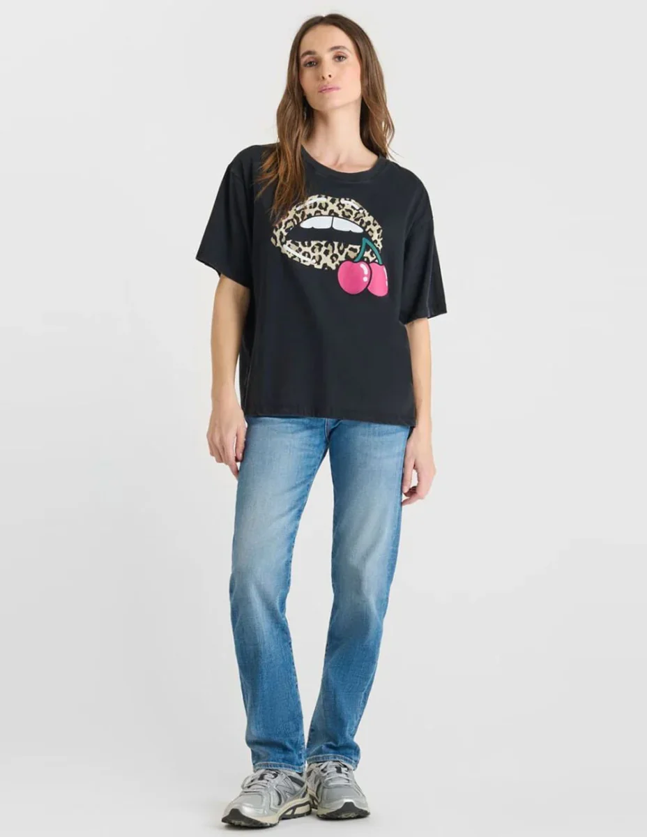 La Camiseta Le Temps des Cerises Kany Negra ofrece un estilo moderno y versátil, ideal para looks urbanos y casuales. Confeccionada con materiales de calidad, asegura comodidad y resistencia. Su diseño actual la convierte en una prenda imprescindible para quienes buscan combinar sencillez y moda con un toque distintivo y elegante.