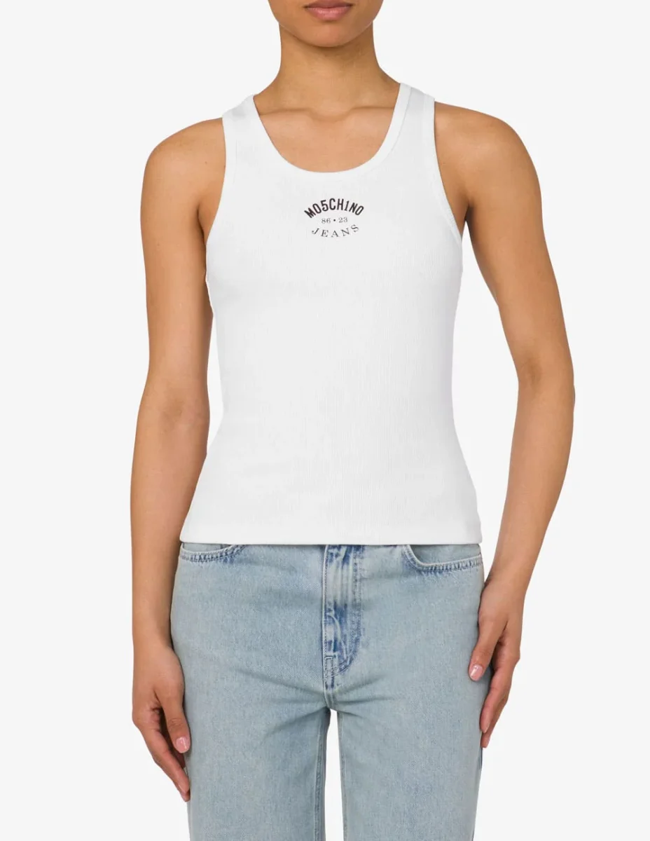 La Camiseta Moschino de Tirantes con Logo Blanca destaca por su estilo fresco y moderno. Con un diseño minimalista y el icónico logo al frente, es ideal para looks casuales con un toque de lujo. Su tejido suave y ajuste cómodo la convierten en un básico imprescindible y versátil.