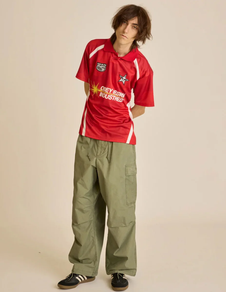 La camiseta polo Obey Soccer Roja fusiona el estilo deportivo con un toque urbano distintivo. Confeccionada en tejido de alta calidad, ofrece comodidad y transpirabilidad. Su diseño en color rojo con detalles clásicos y el logo de Obey aportan un look moderno y versátil, ideal para cualquier ocasión casual.