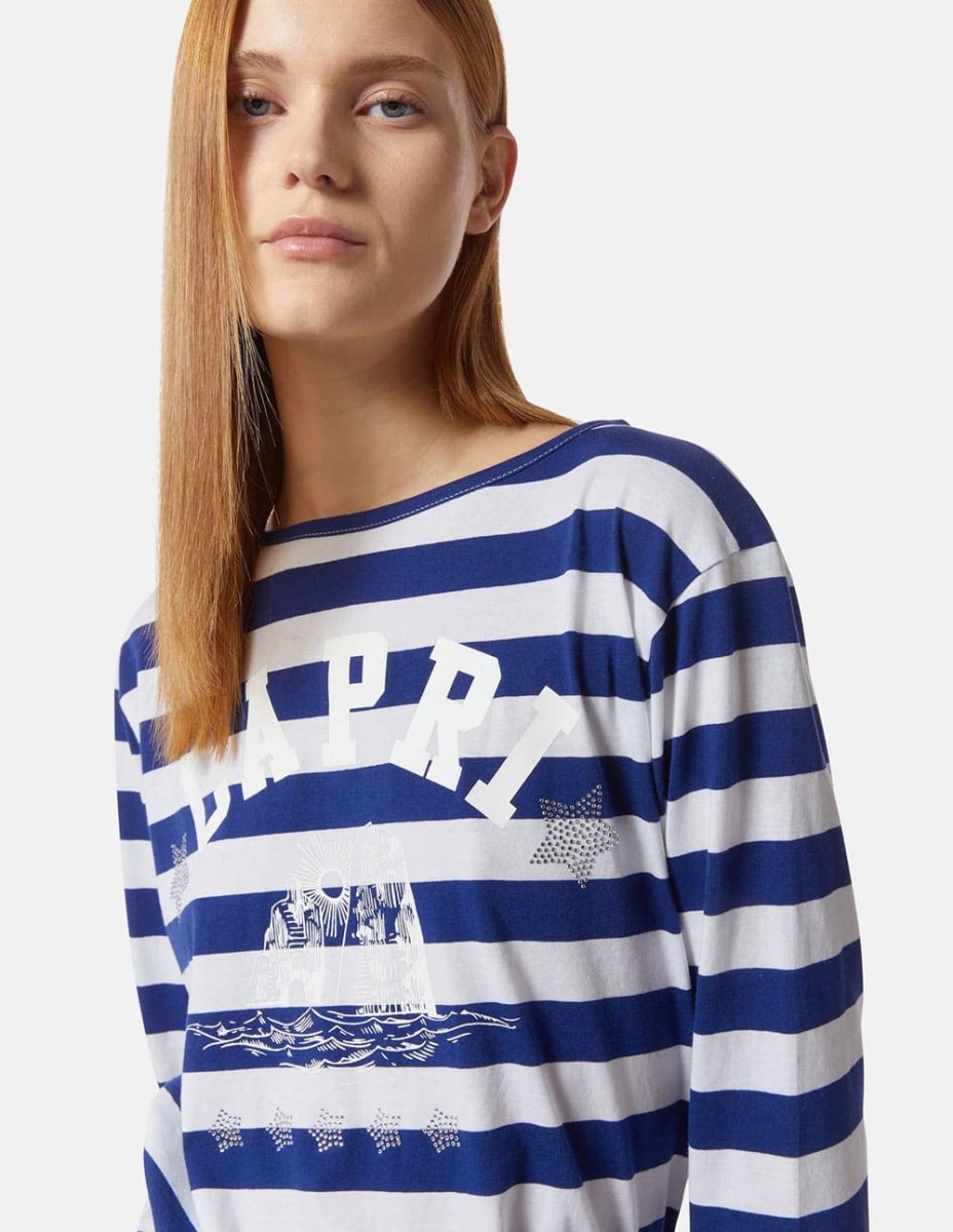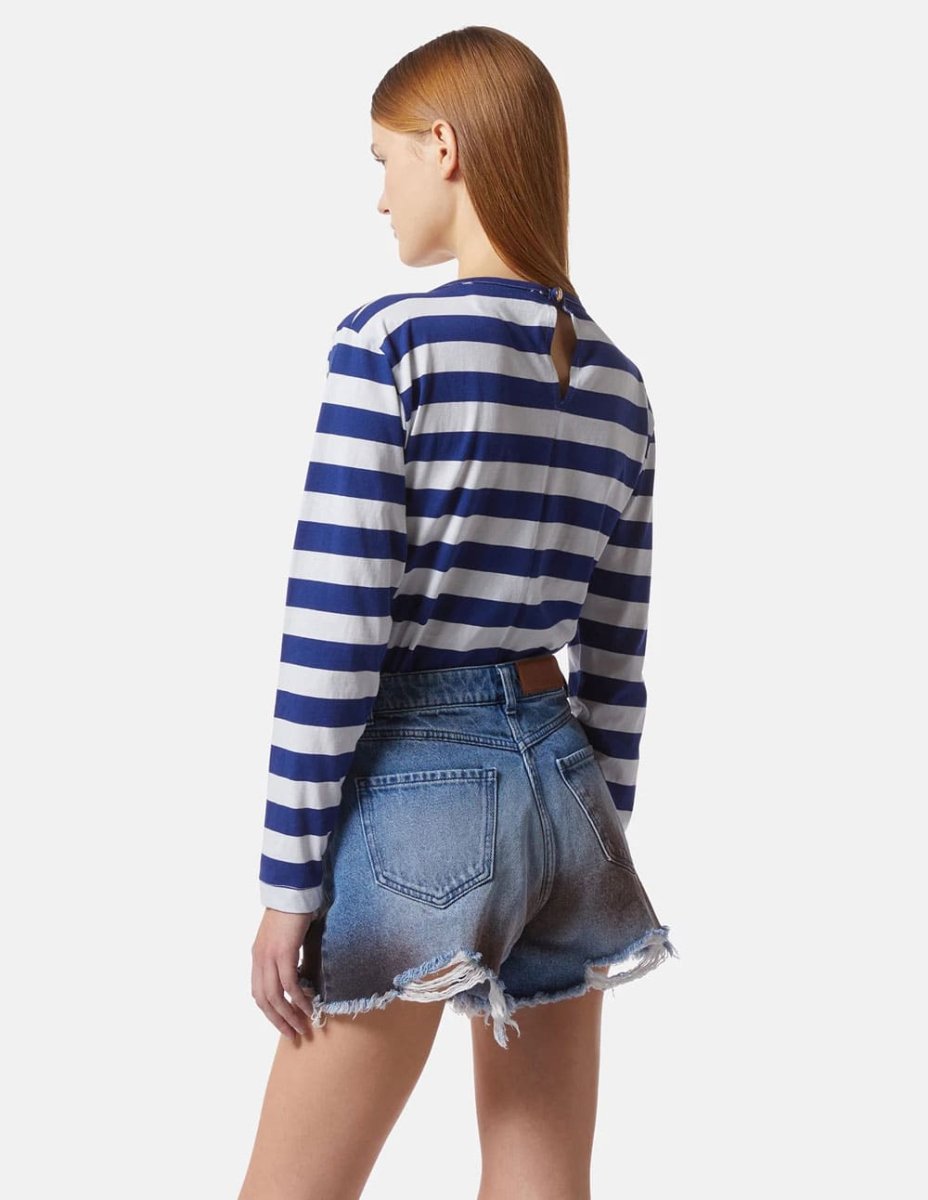 La Camiseta Silvian Heach de Rayas Blanca y Azul combina frescura y estilo marinero en una prenda ligera y actual. Su diseño atemporal y corte cómodo la hacen ideal para el día a día. Perfecta para crear looks desenfadados con un toque chic y femenino en cualquier temporada.