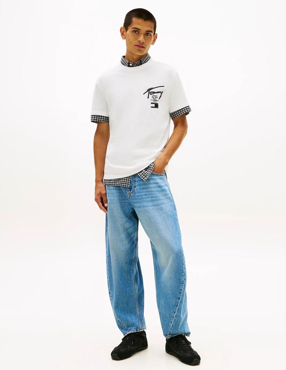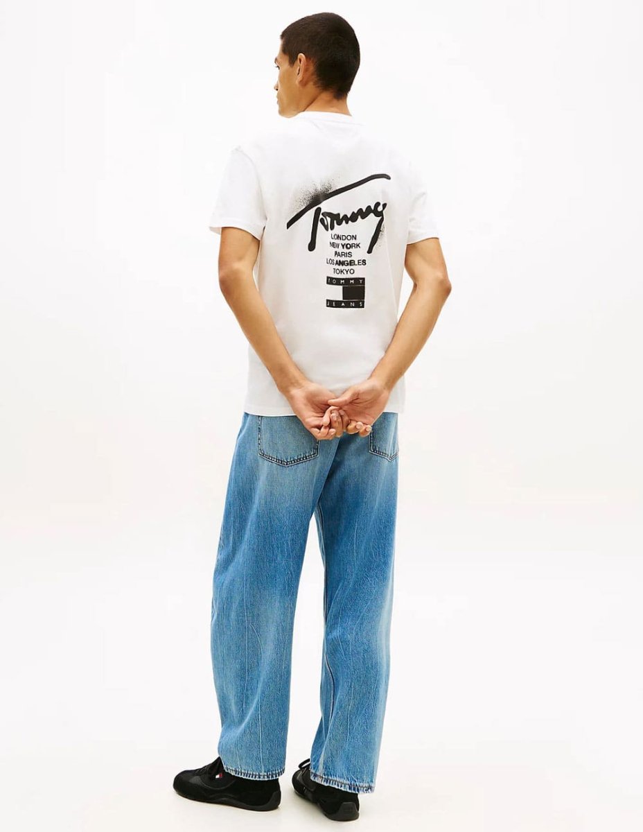 La Camiseta Tommy Jeans de Punto con Logo con Firma Blanca ofrece un estilo limpio y contemporáneo perfecto para el día a día. Su tejido de punto proporciona suavidad y comodidad, mientras el detalle del logo aporta carácter al diseño. Versátil y fácil de combinar, encaja en looks casuales.